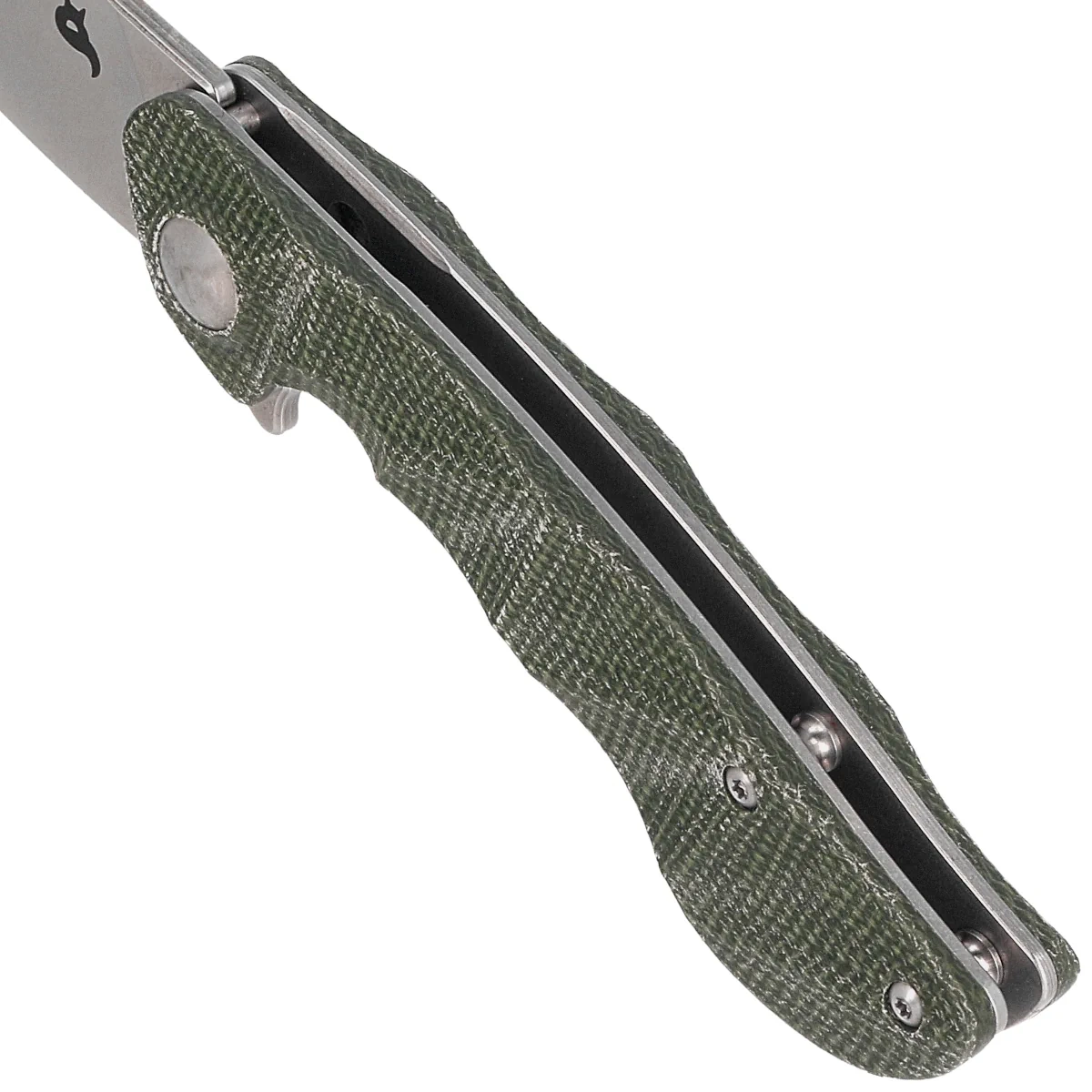 • Dripper OD Green Canvas Micarta, Stonewashed, an elegant folding knife that combines functionality with sophisticated design. The Canvas Micarta handle provides a secure grip, while the VG-10 steel blade offers durability, precision and reliability