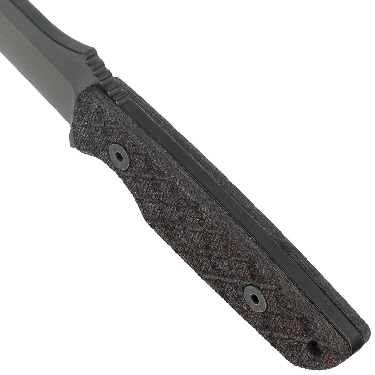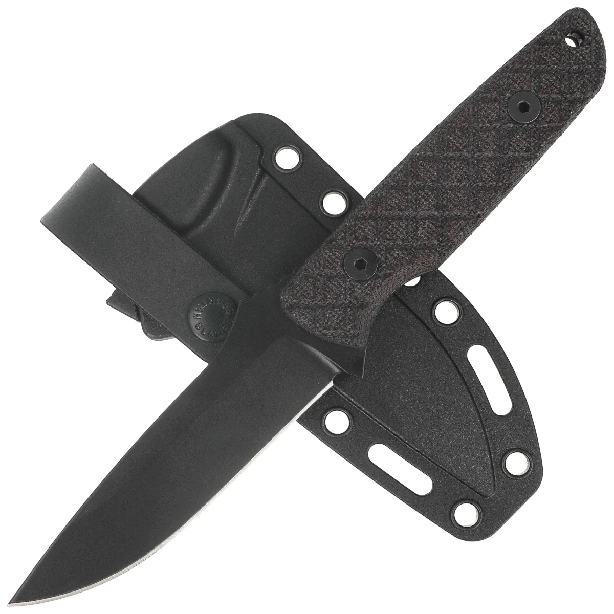 Alala Black Canvas Micarta, Black named after the ancient Greek word for “battle cry” or “war cry”, is a solid everyday knife designed for reliability and durability. Its full tang construction ensures maximum durability, making the knife resistant to damage and overload during intensive use. The 1095 Cro-Van carbon steel blade is exceptionally hard and easy to sharpen, making it the ideal choice for tasks that require both precision and effectiveness. The black, powder-coated protective layer minimizes light reflection and effectively protects the steel from corrosion. The Micarta composite handle offers a secure, stable grip, even when hands are damp or dirty. Its rough texture ensures excellent control over the tool, and the ergonomic shape is perfectly suited to the natural position of the hand. The knife comes with a durable plastic sheath for safe storage and quick access to the tool. Designed by Curtis Iovito, an experienced Special Forces veteran, this model reflects the practicality and functionality that will be appreciated by professionals and users looking for a reliable everyday tool.