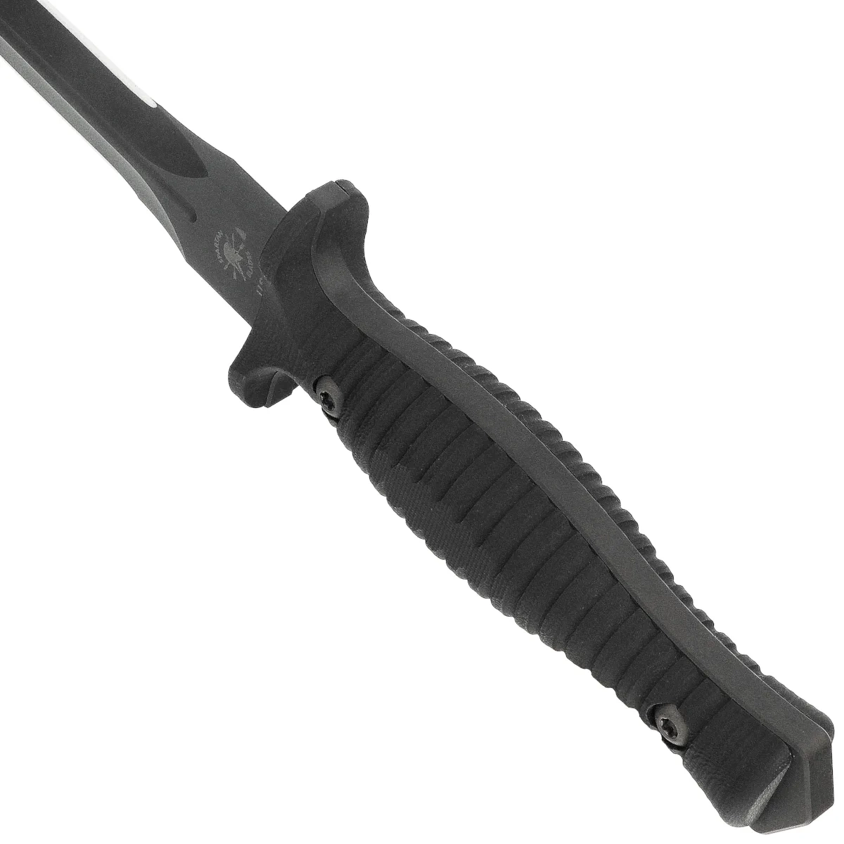 Handle - Grips made of G10 composite, a material with extremely high mechanical strength and virtually complete resistance to weather conditions and chemicals, textured for improved grip. The profiled shape ensures a comfortable, secure grip even with wet hands. The forefinger groove on the front improves grip. The protruding part of the tang can be used as an improvised window breaker.