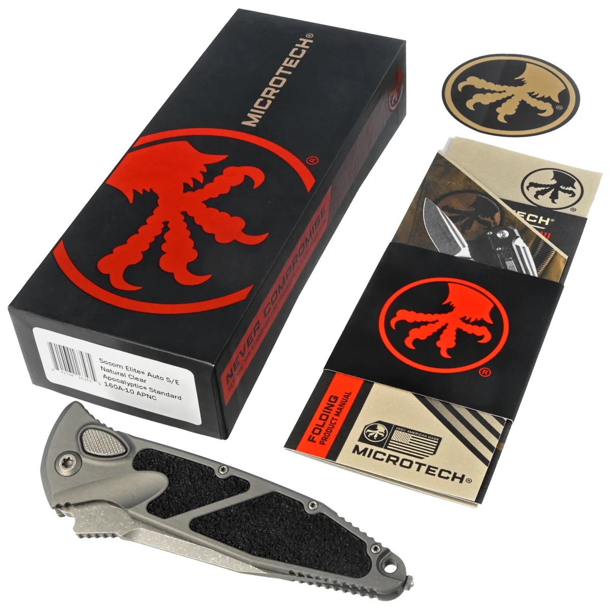 Microtech Socom Elite Auto S/E Automatic Knife Natural Clear Aluminum, Apocalyptic M390 by Tony Marfione (160A-10APNC)