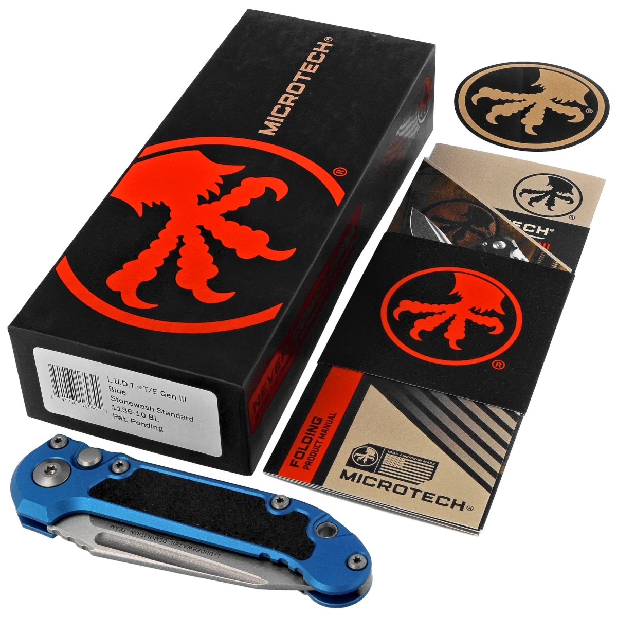 Microtech LUDT Gen III T/E Automatic Knife Blue Aluminum, Stonewashed M390MK by Tony Marfione (1136-10BL)