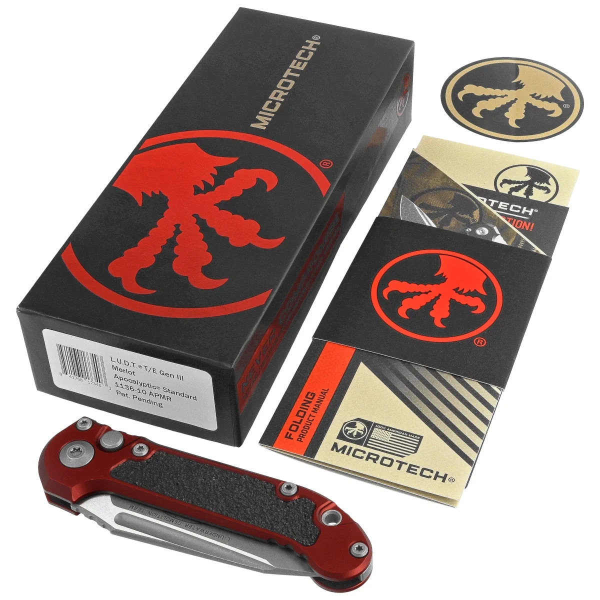 Microtech LUDT Gen III T/E Automatic Knife Merlot Aluminium, Apocalyptic M390MK by Tony Marfione (1136-10APMR)