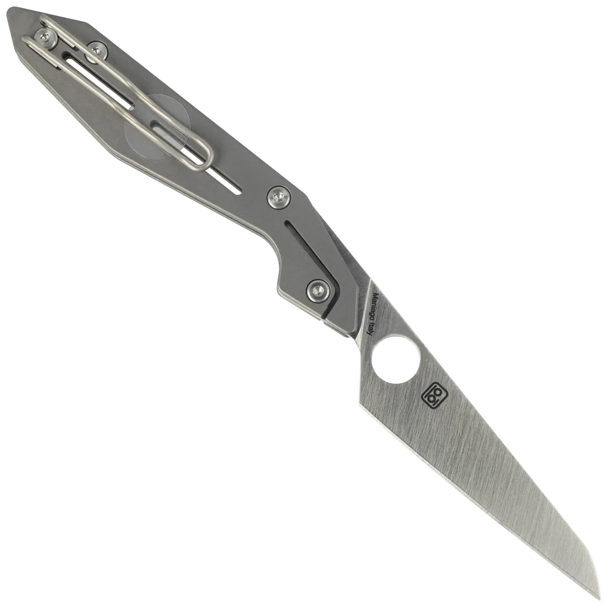 Handle - made of solid titanium, which provides exceptional rigidity with low weight and high corrosion resistance. Milled edges, delicate finger rests and an ergonomic grip line make the knife fit securely in the hand despite its compact size. Choils and subtle ribbing improve control and reduce the risk of accidentally closing the blade. The built-in Ball Joint Non-Locking mechanism, based on a double ball latch, offers a unique user experience - maintaining smooth operation and meeting legal requirements in countries that ban locking knives. The overall design is complemented by a tip-up wire clip on both sides for discreet portability and easy access. The open design not only emphasizes the technical nature of the model, but also facilitates maintenance. This is an EDC knife created for users who appreciate engineering, aesthetics and subtle functionality.