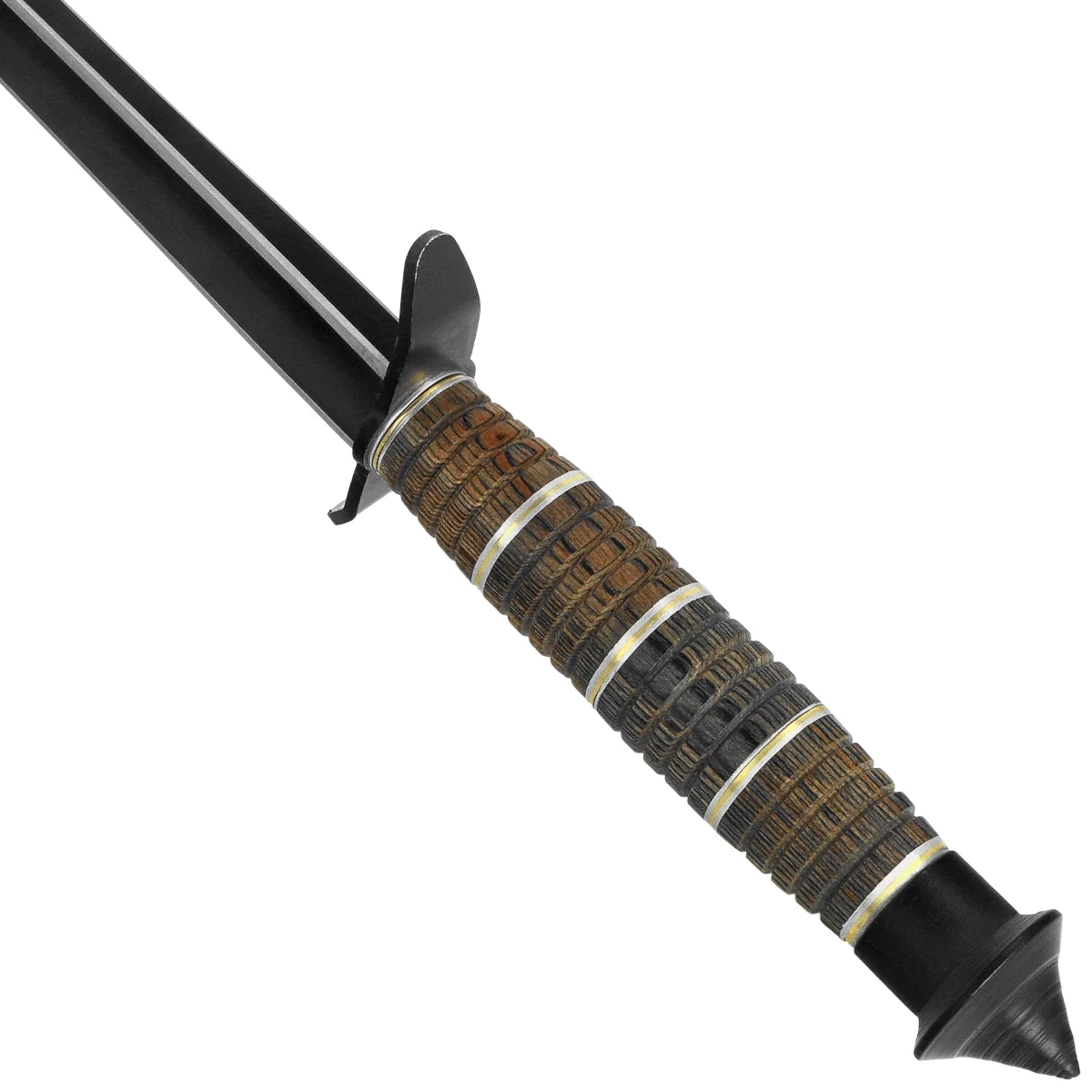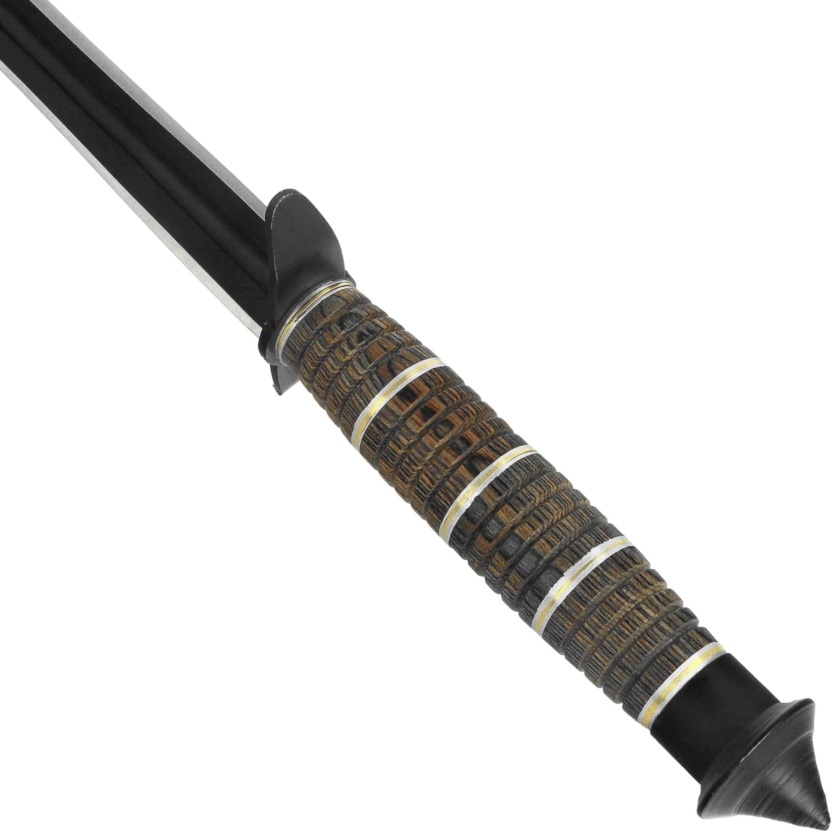 Blade - made of 3Cr13MoV stainless steel, known for its corrosion resistance and ease of maintenance. The distinctive tri-edge profile includes three edges converging at the pointed tip, giving the design an aggressive look and high penetrating ability. The lack of a classic grind and uniform form translate into a decorative and ceremonial knife. The black finish (black coated) enhances its tactical aesthetics and reduces glare, fitting in with the style of show and display knives. The overall design is a piece of distinctive character - intended for collections, decoration or shows.