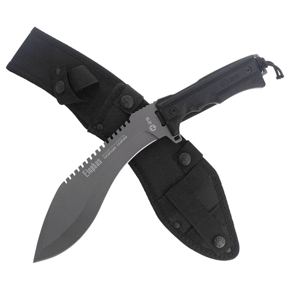 - Elephas Kukri Black SFL, Titanium - a tactical kukri machete with a curved blade coated with titanium and an SFL plastic handle. It comes with a sheath with MOLLE system - a tool made for field work and bushcraft applications.