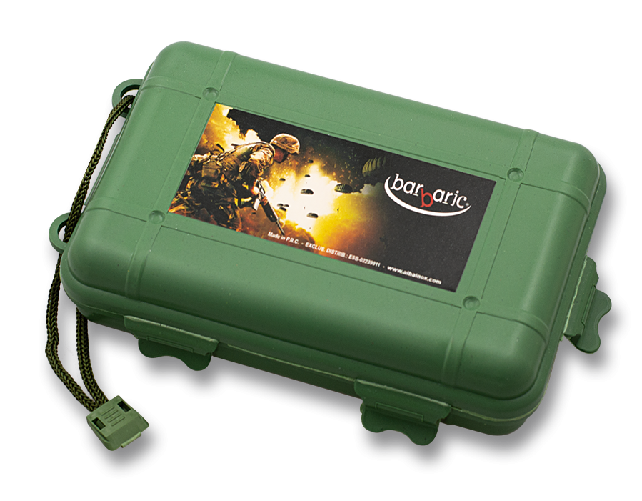 - Survival Case 180x110x50mm, Green ABS (34162) - EDC case from Barbaric made of durable ABS, impact and moisture resistant. Snap closure, low weight and mobility for outdoor accessories.