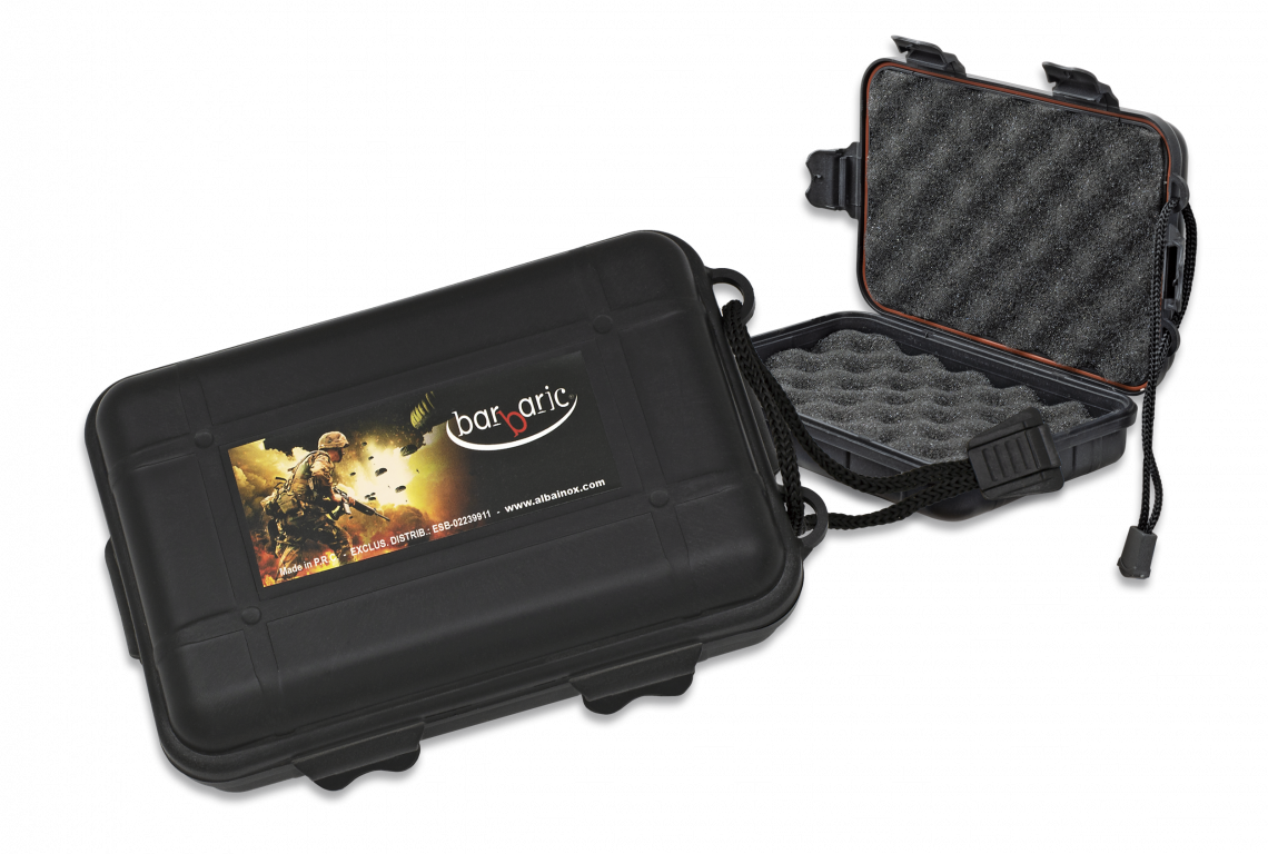 - Survival Case 120×80×40 mm, Black ABS (33922) - Compact EDC case from Barbaric made of durable ABS, impact and moisture resistant. Snap closure, low weight and mobility for outdoor accessories.