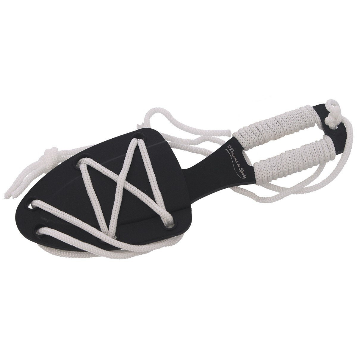 Handle with full tang construction was made as an integral part of the knife, which provides maximum rigidity and resistance to dynamic loads. Wrapping with white paracord improves the grip, even with wet hands, and can also serve as an emergency cord backup. The shape of the handle has been optimized for grip ergonomics , which ensures stability and control in handling. It comes with a plastic sheath, allowing safe, fast and discreet carrying around the neck. The whole is distinguished by aggressive styling, which also makes this model attractive to collectors and enthusiasts of tactical equipment.