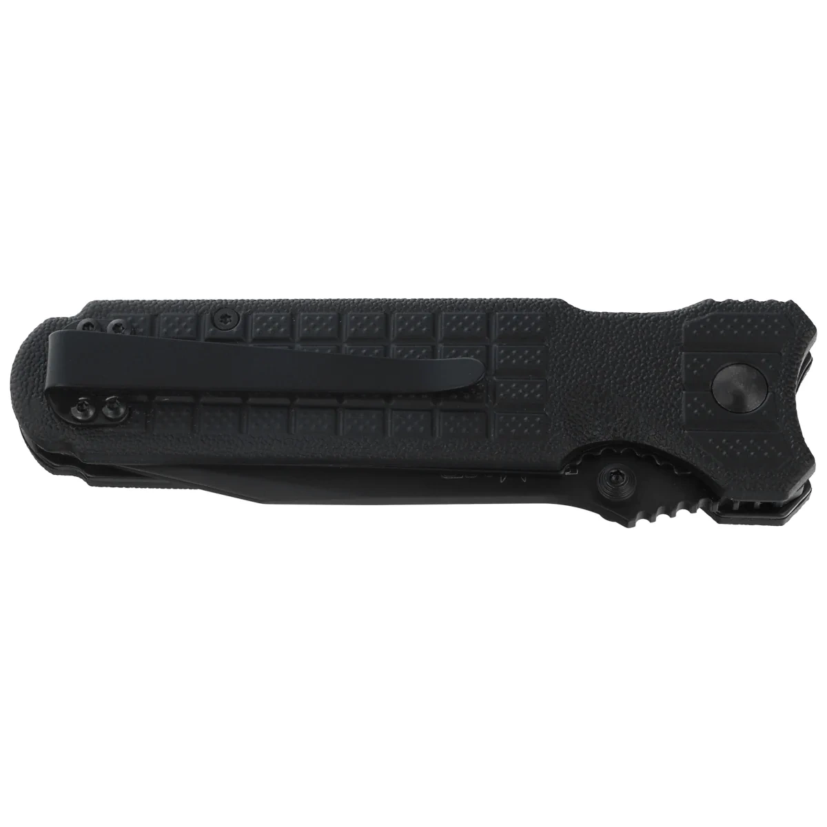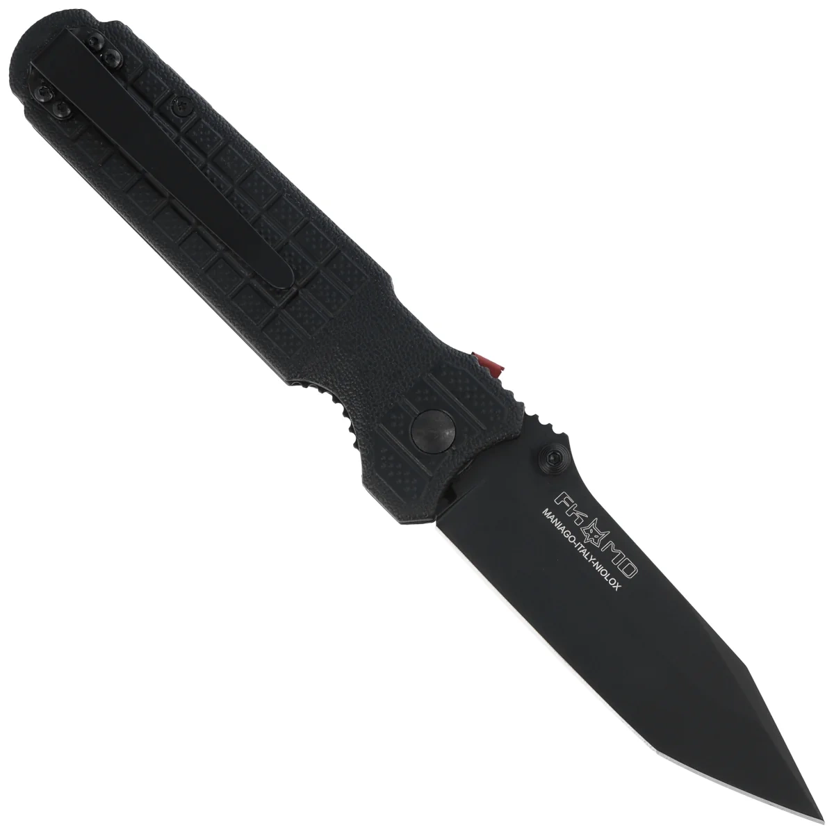 Blade - designed for operational and tactical applications, where full readiness and reliability counts . The tanto profile guarantees high penetrating ability and increased tip strength, ideal for heavy-duty work. The Niolox steel used offers excellent wear resistance and long-lasting sharpness, even under heavy use. The flat grind improves blade control and cutting efficiency. Black Idroglider coating increases surface resistance to scratches, chemicals and weathering, while reducing glare. The automatic mechanism allows for quick one-handed opening, which is crucial in emergency situations. Additional security in the form of the LAWKS system, working in conjunction with the liner lock, ensures the stability of the blade under heavy pressure. This is a solid, modern Blade, designed for users who need instant readiness and full reliability.