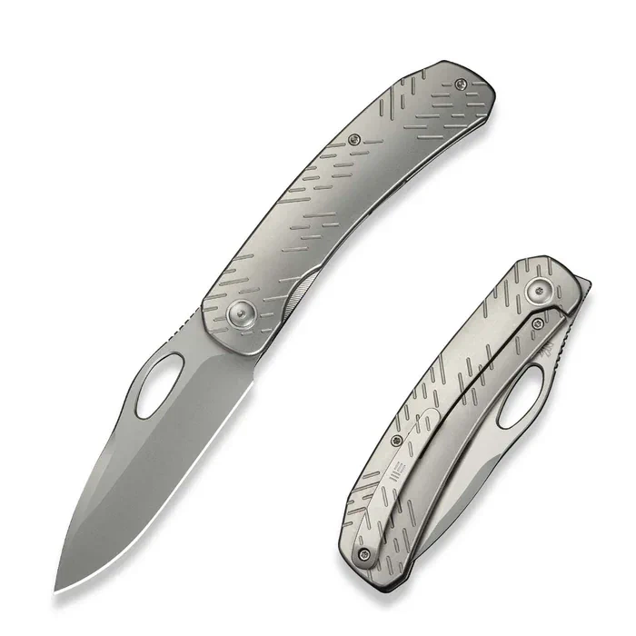 Inmate Gray Titanium, Stonewashed is a modern EDC folder designed by Jerad Neeve, which combines compact form, advanced materials and precision craftsmanship. The slim, lightweight design makes the knife a perfect fit for everyday use, maintaining full functionality and reliability for a wide range of off-road and urban applications. Blade is made of CPM 20CV powder steel , offering excellent abrasion resistance, high edge stability and exceptional corrosion resistance, which translates into long-lasting sharpness and blade durability even under heavy EDC use. The spear point profile combines utility versatility with blade precision for precision and technical everyday tasks. The stonewashed finish gives the blade a rough utility character, effectively masking microscratches and signs of use. The Handle is made of milled titanium 6Al-4V, providing high mechanical resistance, rigidity and lightweight construction. Subtle raindrop milling enhances the ergonomics of the grip and increases the aesthetics of the design. The frame lock stabilizes the blade in the open position, offering complete user safety. The opening system is based on the front flipper and thumb hole, and the precise ceramic bearing guarantees a smooth and fast operation of the blade. The whole is complemented by a titanium deep-carry tip-up clip and an intricate backspacer, creating a cohesive, minimalist premium whole. The WE23096B-1 is for users who appreciate the perfect refinement of mechanics, compact form and functionality of a modern high-end EDC.