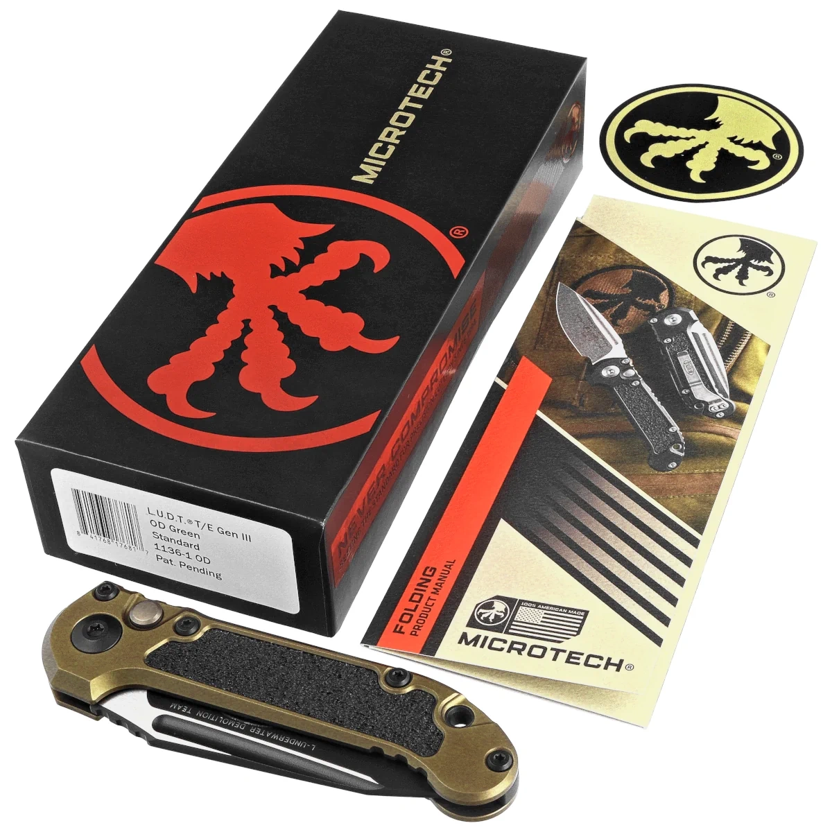 Microtech LUDT Gen III T/E Automatic Knife OD Green Aluminum, Black M390MK by Tony Marfione (1136-1OD)