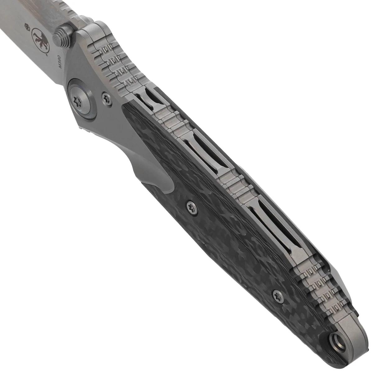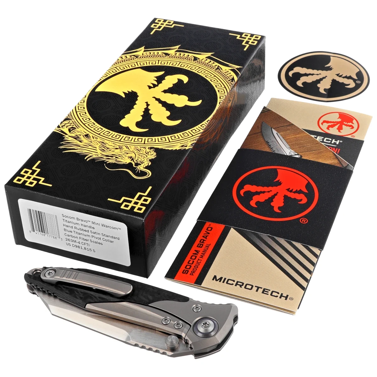 Microtech Socom Bravo Mini Warcom Knife Titanium/Carbon Fiber, Blue HW, Hand Rubbed Satin M390 by Tony Marfione (263M-4CFTI)