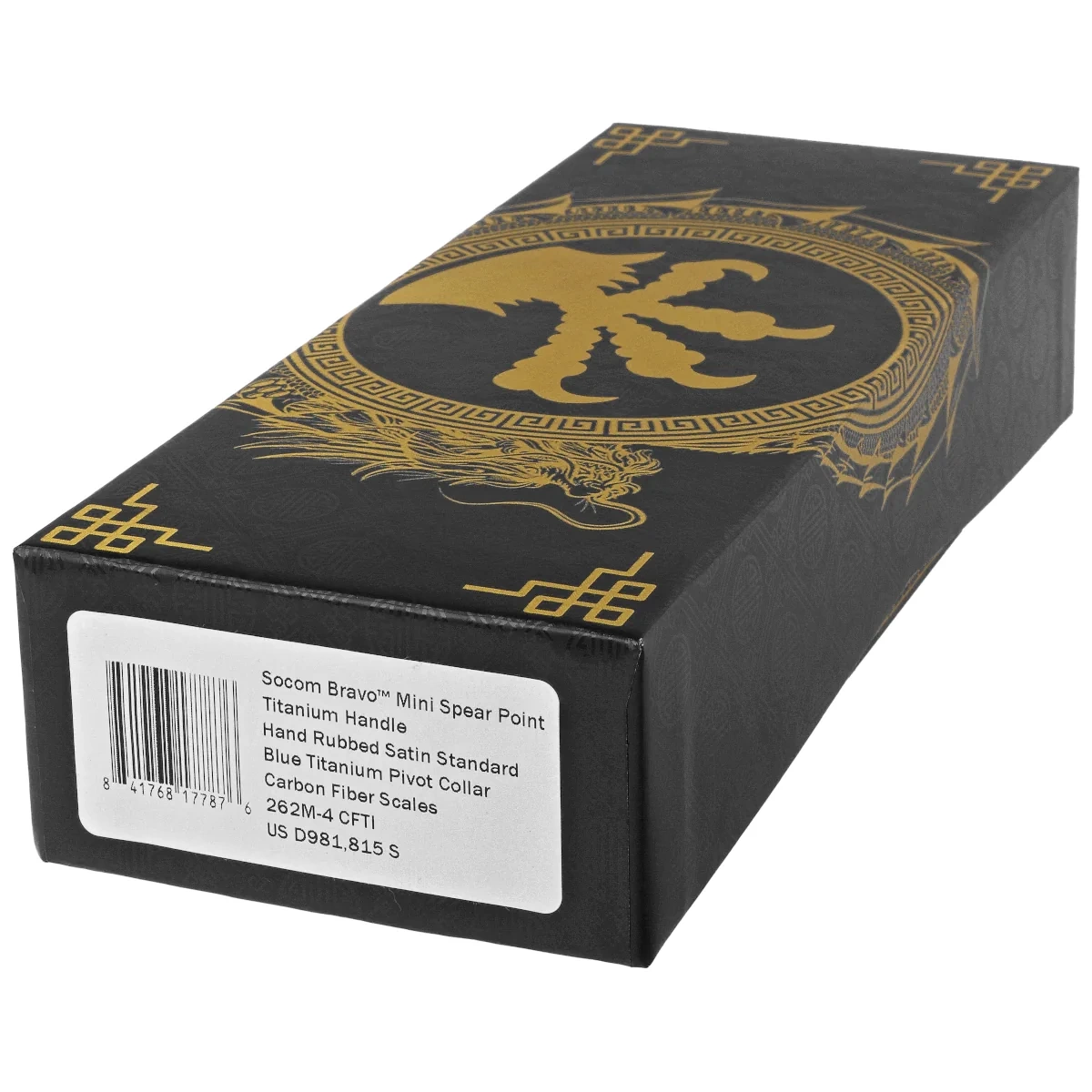 • Socom Bravo Mini SP Titanium/Carbon Fiber, Blue HW, Hand Rubbed Satin compact folding knife designed to meet the most stringent requirements of US Army Special Forces operators. Best materials, incredible durability.