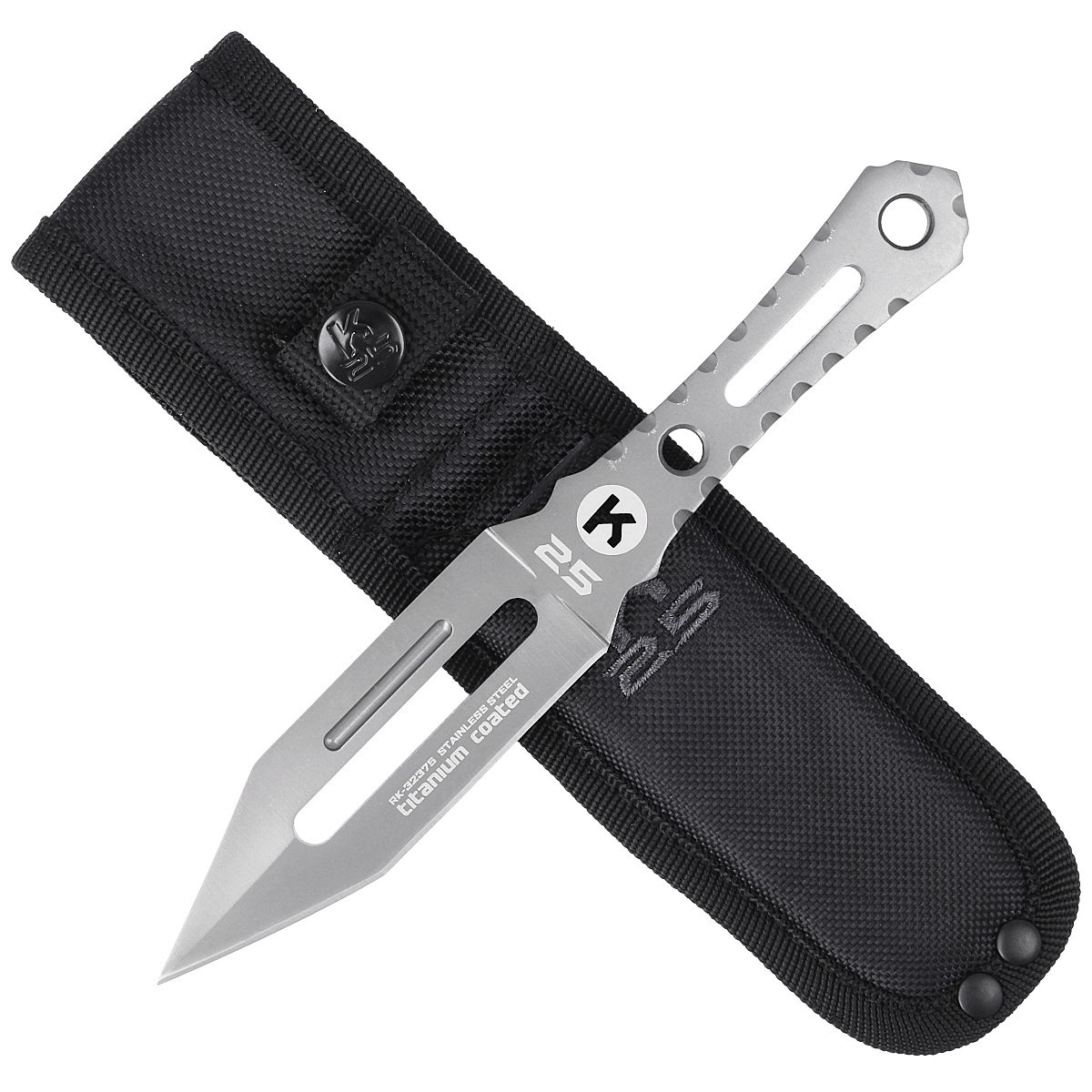 - K25 Thrower Knife Titanium 7Cr17MoV (32375) - a sturdy full-tang throwing knife with a balanced design and titanium coated 7Cr17MoV blade. A precision tool for training and recreational throwing enthusiasts.