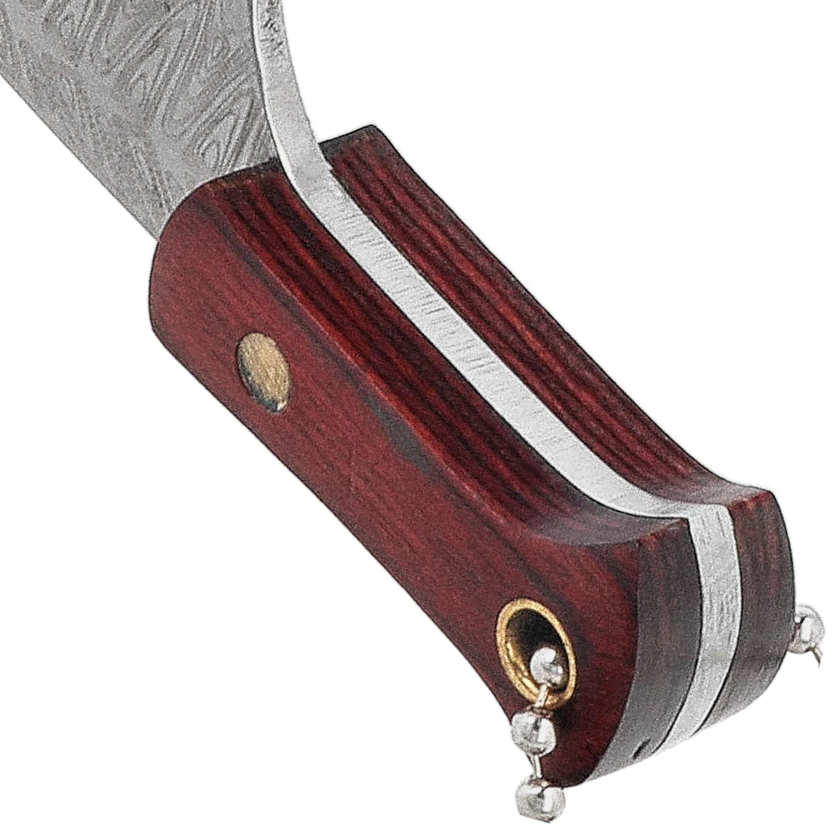 Blade - with drop point profile is made of 3Cr13Mov stainless steel, which guarantees resistance to corrosion and ease of sharpening. A decorative print resembling the Damascus pattern serves an aesthetic function, adding elegance to the knife. The blade is ideal for everyday, small applications - opening packages, cutting strings or other improvised tasks.