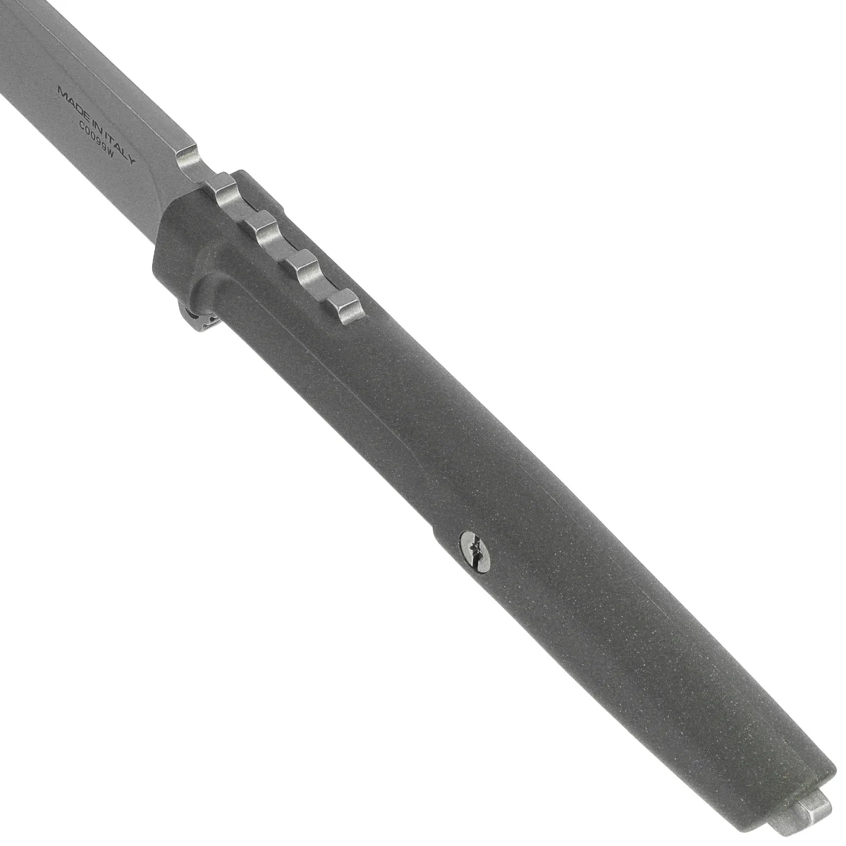 Blade - Blade is used with drop point profile , which provides versatility in tasks requiring precision and control. Nitrogen steel offers exceptional abrasion resistance, long-lasting sharpness retention and ease of sharpening, making it a material suitable for heavy field use. The Stonewashed finish reduces light reflections and provides a tactical look to the blade. The flat grind provides optimal cutting geometry and reduces drag when working with a variety of materials. Blade is set in full tang construction , guaranteeing maximum rigidity and reliability in all field conditions.