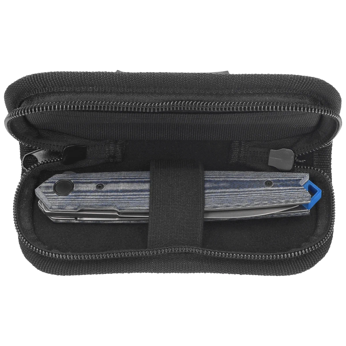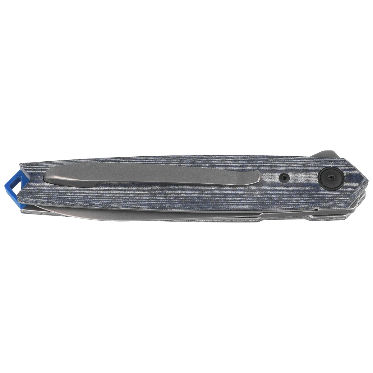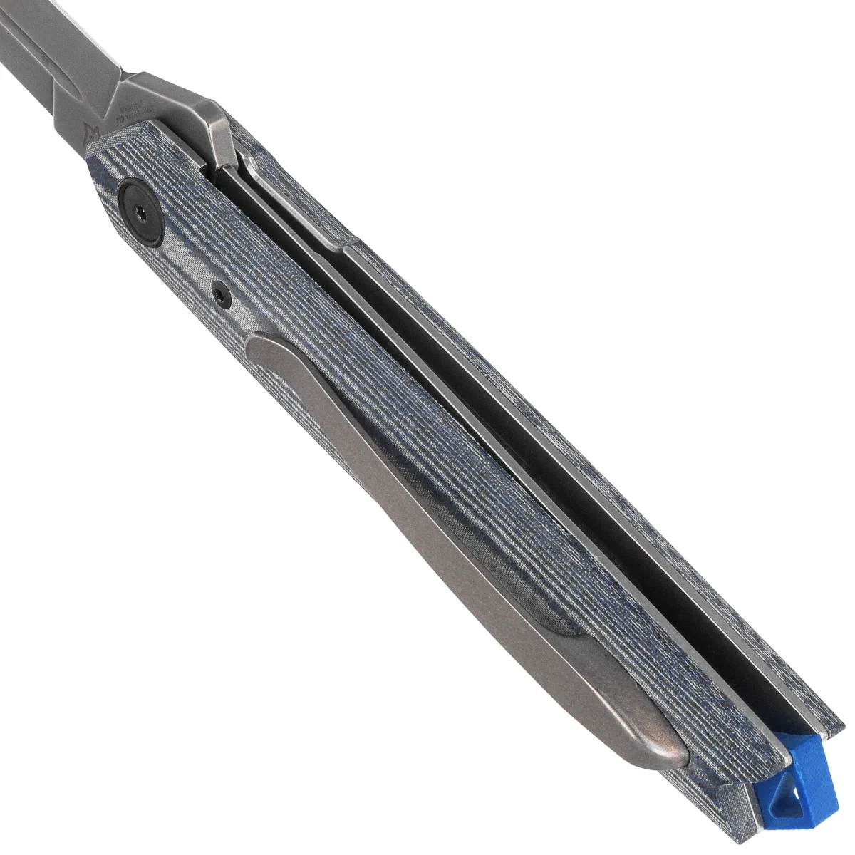 Handle - made of Denim Micarta composite, provides durability and comfortable grip even with wet hands. Subtle profiling improves ergonomics, and steel liners stabilize the entire design. The whole is complemented by a tip-up clip, allowing the knife to be carried discreetly in a pocket. The blue G10 backspacer not only strengthens the construction, but also adds a visual accent. The rear eyelet allows you to mount a cord or bead. The design combines classic lines with modern materials, creating a construction that is sturdy, aesthetically pleasing and prepared for heavy use.