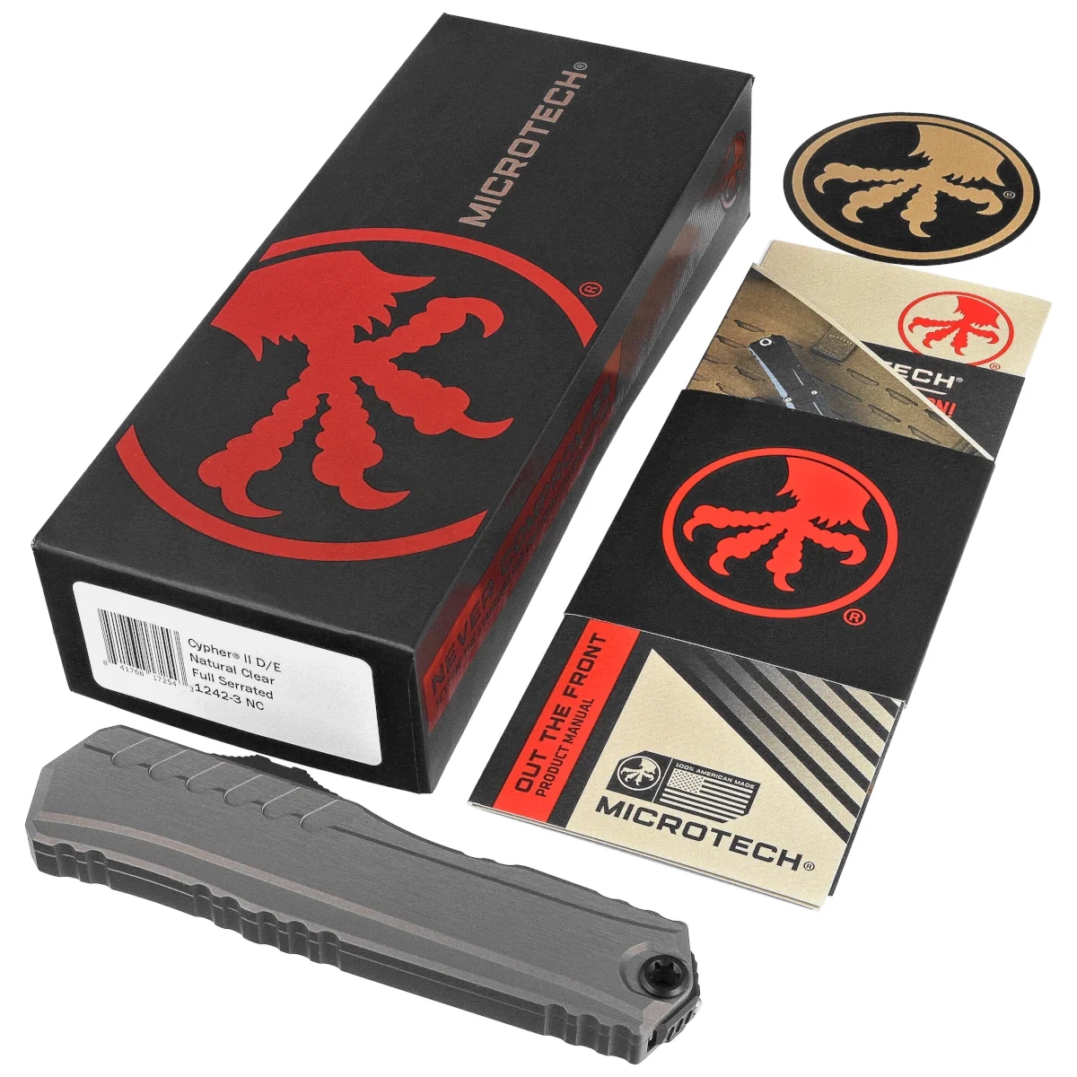 Microtech Cypher II D/E OTF Knife Natural Clear Aluminum, Black M390MK F/S by Deryk Munroe and Tony Marfione (1242-3NC)