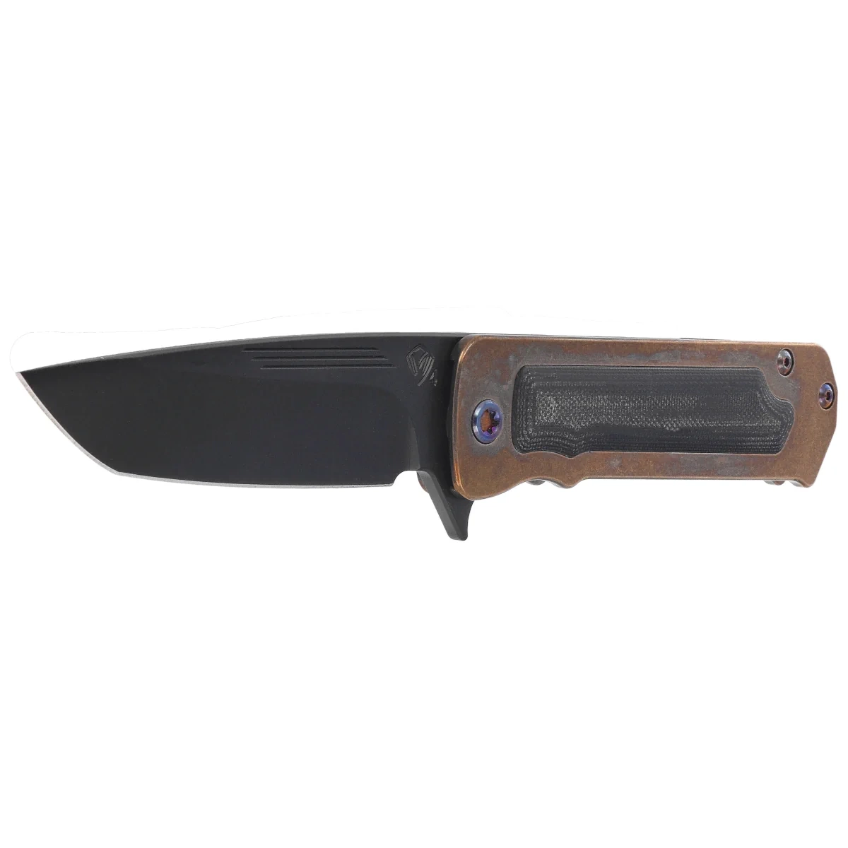 Blade - tanto type , made of high-grade CPM S45VN steel , known for its excellent corrosion resistance, cutting edge stability and ability to maintain sharpness for a long time. The black DLC coating gives it a more tactical feel. Thanks to the hollow grind, the blade offers very good cutting properties while maintaining adequate strength in the tip zone. The flipper is responsible for the Blade's quick opening, while the milling on the back(jimping) improves control in precision cuts. The whole is supported by a strong pivot, which increases the smoothness of operation and mechanical resistance.