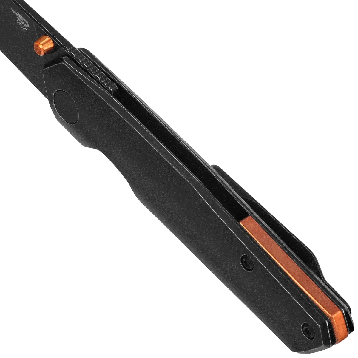 VK-Kuze Black Titanium, Black Stonewashed is the result of a collaboration between the Bestech Knives brand and a designer operating under the pseudonym Vulpex Knives, who has become famous for his precise, geometric designs with high utility value. This folder represents a modern design philosophy - based on clean lines, technical simplicity and refined ergonomics. Its form has been thought out for everyday use, offering exceptional comfort and a subtle industrial aesthetic. At the heart of the knife is a Blade made of MagnaCut steel, a material with an excellent balance between corrosion resistance, edge durability and sharpenability. With a Black Stonewashed surface finish, the blade not only looks professional, but also effectively masks minor signs of use. The geometry is designed for precision cutting tasks in everyday EDC scenarios. The sandblasted titanium Handle emphasizes the minimalist nature of the design - the lack of ornamentation, straight lines and integrated deep carry clip create a cohesive, clean form. The frame lock ensures stability and security even in more demanding applications. The VK-Kuze is a model created for users who are looking for a practical premium knife in a modern, engineering style.