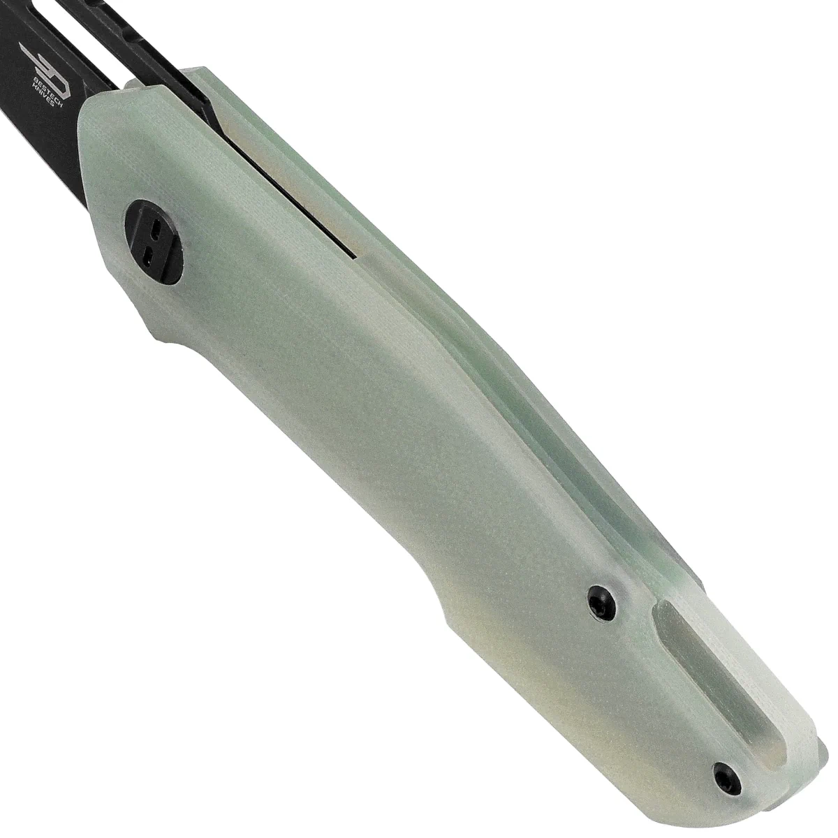 Toddler Transparent G10, Black PVD Stonewashed by Bestech Knives, designed by Polish knifemaker Maciej Torbé, is an advanced EDC folder, in which every detail has been subordinated to ergonomics, functionality and ease of everyday use. The small size and refined form make the knife perfect for urban environments - as a reliable tool, but also as a stylish piece of everyday gear. Blade made of 14C28N stainless steel offers high corrosion resistance and good sharpness retention while maintaining ease of sharpening. The wharncliffe profile with a gently raised cutting line allows precise handling of the blade for technical tasks. Finished using the Stonewashed method and coated with a black PVD coating that adds a technical touch and reduces the visibility of use marks. A hole in the Blade provides convenient, intuitive access to the blade, and the Ball bearing-based design guarantees smooth and effortless operation. The Handle is made of G10, a lightweight and resistant composite with a pleasant-to-the-touch texture and ergonomic contouring. A finger undercut and milling on the back (jimping) improve control over the knife even during precision tasks. The whole is based on steel liners, which act as reinforcement and part of the liner lock system . A deep carry clip and a rope hole complete the knife's functionality, while a personalized pivot with the designer's logo emphasizes the unique character of this design.