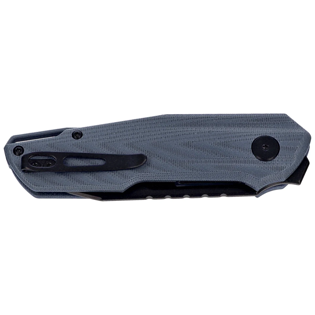 Handle - designed for full control and comfort while maintaining a compact size. G10 composite grips with a lightweight texture and matte finish provide a secure grip, even in wet environments. Ergonomic cont ouring with a pronounced index finger undercut improves stability for precision tasks. There is a milling (jimping) on the back to further enhance thumb grip. Internal steel liners reinforce the entire structure and are an integral part of the liner lock system, which securely holds the blade in the open position. A deep-carry clip allows the knife to be carried discreetly in a pocket, and a hole in the back of the Handle allows the installation of a safety cable. The whole is completed by a decorative pivot with a graphic detail - the designer's trademark.