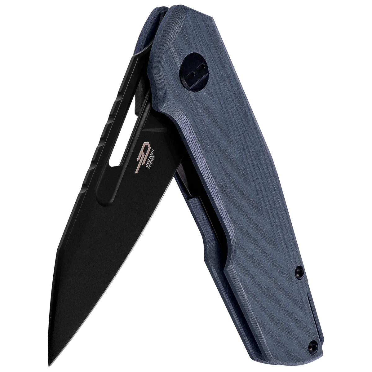 Toddler Blue G10, Black PVD by Bestech Knives, designed by Polish knifemaker Maciej Torbé, is an advanced EDC folder, in which every detail has been subordinated to ergonomics, functionality and ease of everyday use. The small size and refined form make the knife perfect for urban environments - as a reliable tool, but also as a stylish piece of everyday gear. Blade made of 14C28N stainless steel offers high corrosion resistance and good sharpness retention while maintaining ease of sharpening. The wharncliffe profile with a gently raised cutting line allows precise handling of the blade for technical tasks. Coated with a black PVD coating that adds a technical touch and reduces the visibility of use marks. A hole in the Blade provides convenient, intuitive access to the blade, and the Ball bearing-based design guarantees smooth and effortless operation. The Handle is made of G10, a lightweight and resistant composite with a pleasant-to-the-touch texture and ergonomic contouring. A finger undercut and milling on the back (jimping) improve control over the knife even during precision tasks. The whole is based on steel liners, which act as reinforcement and part of the liner lock system . A deep carry clip and a rope hole complete the knife's functionality, while a personalized pivot with the designer's logo emphasizes the unique character of this design.