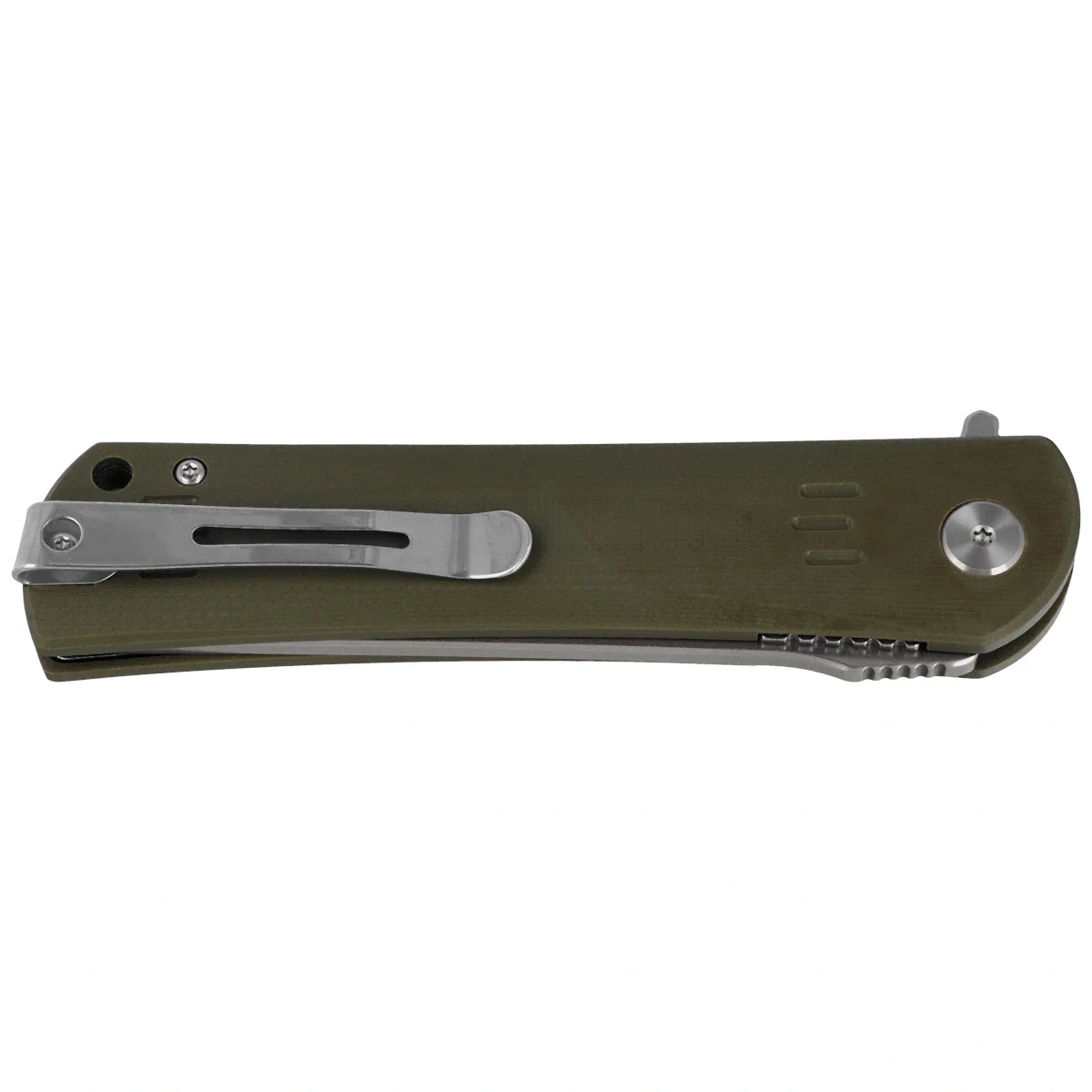 Handle grips - made of G10, a material insensitive to weather conditions, resistant to chemicals and mechanical damage Chamfered edges of the covers eliminate sharp edges and texturing of the surface improves grip security. The backspacer to which the grips are attached guarantees the rigidity and strength of the entire structure. A single-position, right-handed clip allows the knife to be carried in tip-up position , with the tip of the blade upward.