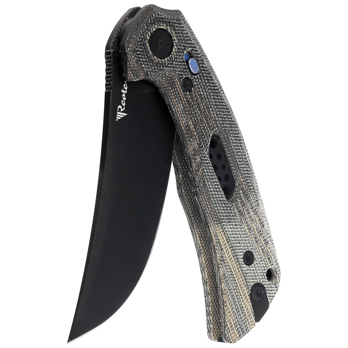 Handle - made of two-tone Micarta, a material resistant to moisture and temperature changes, with a laminated structure that increases durability while maintaining low weight. The milled finish provides a secure grip without excessive roughness. The pivot lock mechanism, centrally embedded, allows intuitive locking and releasing of the blade by pressing the axis screw. The slightly enlarged profile improves ergonomics, especially for longer tasks. The overall design is complemented by a double-sided titanium deep-carry clip, allowing for discreet carrying, and a lanyard hole, which enhances attachment and security options. The accuracy of fit and finish of all components confirm the premium quality, for which the Reate brand is known.