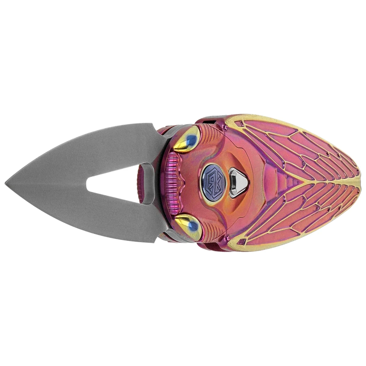 • Cicada-PG Purple / Gold Titanium, Bead Blasted - a modern premium folding knife from Rike Knife, with an M390 steel blade and milled titanium handle. Biomechanical form, collectible character and technical precision in one design.