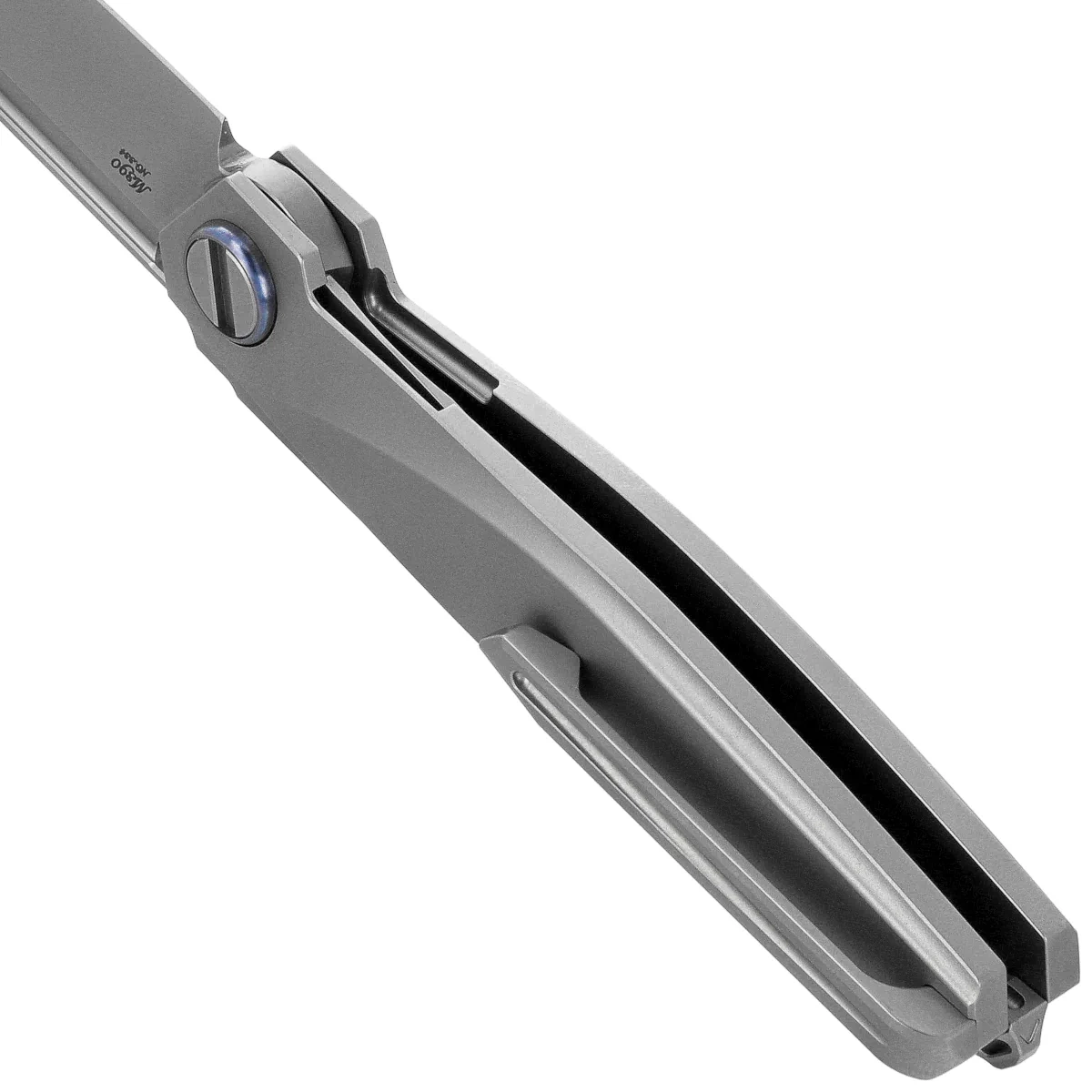 The Baidi S Titanium/Red Carbon Fiber, Bead Blasted from Rike Knife is a design created for users who want uncompromising precision and ergonomics tailored for everyday use. The centerpiece of the design is a 6AL4V titanium skeleton, providing excellent rigidity with minimal weight. The asymmetrical grips adorned with a Red Carbon Fiber inlay not only enriches the styling, but also strengthens the grip and reduces the weight of the design. Blade with Sheepsfoot profile is made of Böhler M390 powder steel, renowned for its exceptional edge durability and corrosion resistance. A full flat grind ensures smooth cutting and excellent penetration properties, while a bead blasted finish reduces reflections and increases resistance to micro-scratching - especially in field or workshop conditions. The opening mechanism is based on a front flipper and ball bearings, which ensures immediate blade response and smooth, play-free operation. A liner lock with easy access is responsible for locking. The deep carry clip allows the knife to be carried discreetly in the pocket, without affecting ergonomics. Baidi S is a model for people who expect durability, functionality and the highest work culture from a tool.