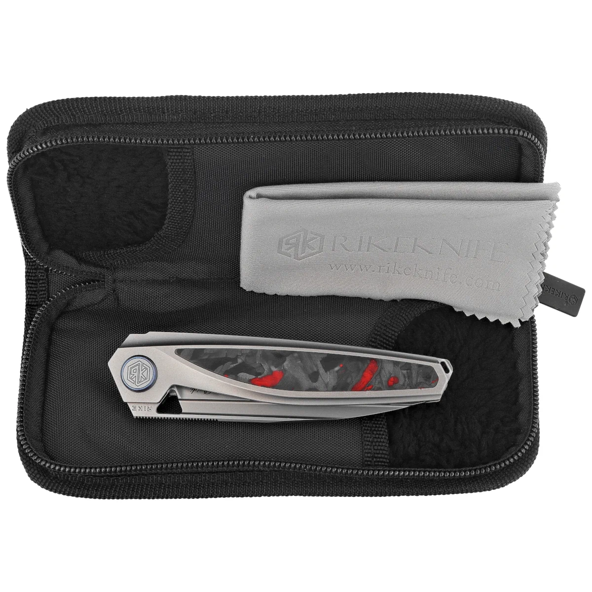 Rike Knife Baidi S Titanium/Red Carbon Fiber, Bead Blasted M390 (RK-Baidi-S-P/RCF)
