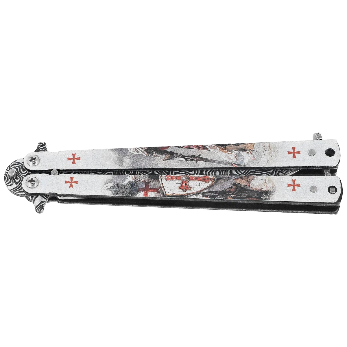 - Balisong White Templar 3D Design Steel, 3D Design 3Cr13Mov (02268) - a strikingly decorated butterfly knife with a Templar motif and a damascus stylized blade. An ideal choice for collectors and lovers of historical symbolism and fantasy style.