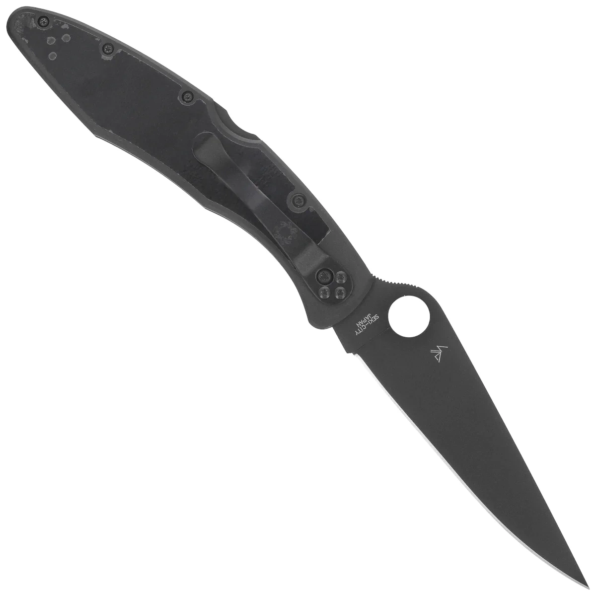 Police Black Stainless Steel, Black is one of the most recognizable knives in Spyderco 's history - a design by Sal Glesser, who has set the stage for tactical and EDC knives since the 1980s . The slim design houses a long, high-performance Blade, while the full-length stainless steel Handle provides exceptional durability, wear resistance and balance. The black version adds a tactical touch to the overall design, without losing any of its classic elegance. Made of VG-10 steel, the Blade with a clip point profile and flat grind guarantees excellent cutting properties while maintaining precision and durability of the blade. The SpyderHole™ opening system allows instant access to the blade, even with gloves - especially appreciated in the uniformed services and by professional users. The Back Lock has been enhanced with a Boye Detent notch, preventing accidental release of the blade with a firm grip. Police is a legendary model - functional, sturdy and reliable. Its four-position clip, corrosion resistance and timeless design make it an ideal tool for both everyday and collector use. It's not just a knife - it's a piece of modern utility design history.