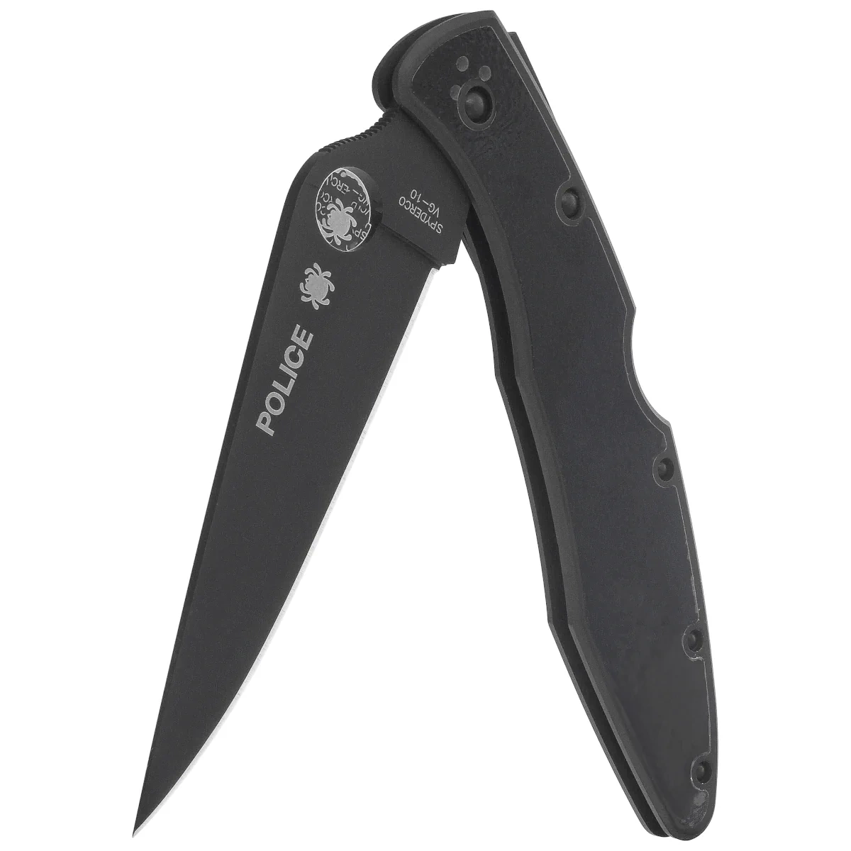 - Police Black TiCN Stainless Steel, TiCN Black, a timeless folding knife designed by Sal Glesser, founder of Spyderco. Its distinctive steel handle, long clip point blade and reliable Back Lock make it an iconic knife.