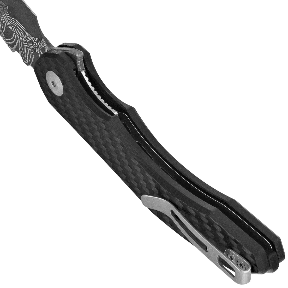 Bluetick Carbon Fiber Overlay on Black G10, Damascus folding knife by E.D.C., designed by Bryan Montalvo. Its wide Blade is made of Damascus steel for excellent strength and sharpness. The ergonomic G10 composite handle provides a secure grip, even in the toughest conditions. Equipped with Nested Liner Lock mechanism , giving security during use. A reliable companion that will always be by your side, regardless of the situation. Robust construction and high-quality materials ensure that it will stand up to any challenge. Whether you're an outdoor enthusiast or looking for a reliable tool for everyday tasks, this knife is the perfect choice.