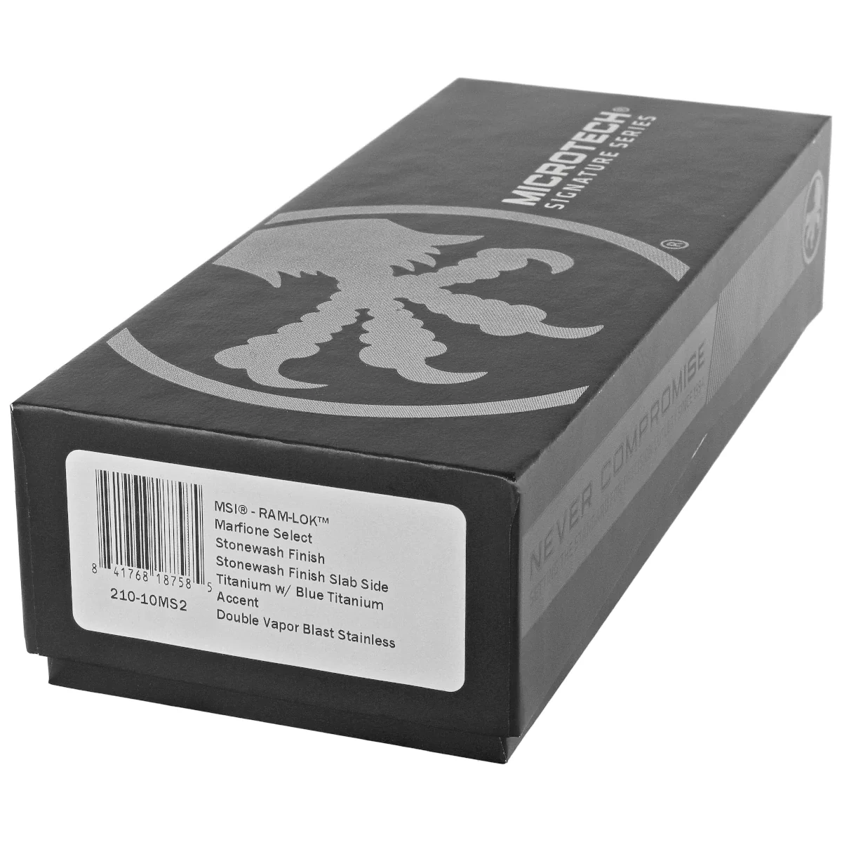 • Marfione Select Amphibian Ram-Lok S/E Stonewashed Gray Titanium, Stonewashed reissue of folding knife with intuitive RAM-Lock. Superior M390MK blade steel, the result of collaboration between Microtech and Bohler engineers. Ergonomic titanium handle.