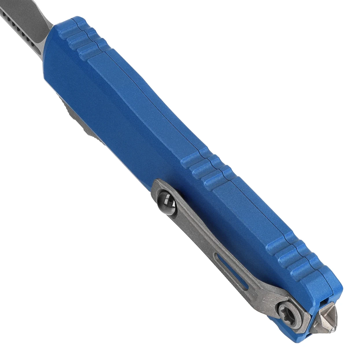 Ultratech S/E Gen III ZBP Blue Aluminum, Apocalyptic is the new addition to the Ultratech series - Microtech's first OTF knife without any blade play when unfolded! The blade play free automatic is distinguished by a number of improvements such as; Crud Kutter™, Dual-Fuel Drive Train™, Zero Blade Play™. The Handle was also redesigned, equipping it with solutions known from other models. Working in D/A (Double Action) mode, it allows the blade to be instantly extended and retracted with a single thumb movement. The design by Tony Marfione, owner of Microtech Knives, combines modern design with the highest quality workmanship