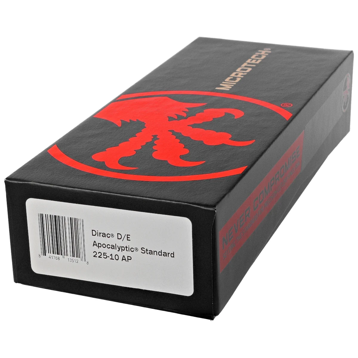 - Dirac D/E Black Aluminum, Apocalyptic is a compact OTF automatic knife from the Dirac series. Operating in D/A mode, it features a hell of a fast blade extension mechanism. Slider button on the side of the handle. Designed by Tony Marfione of Microtech.