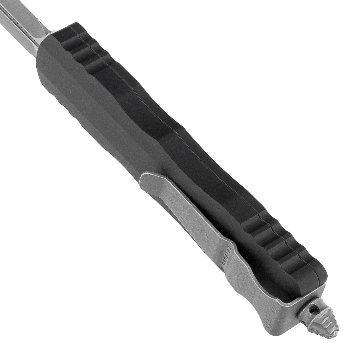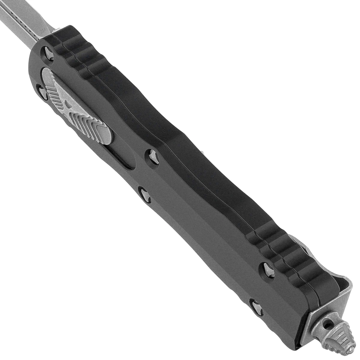 Dirac D/E Black Aluminum, Apocalyptic is a compact OTF automatic knife from the Dirac series. Operating in D/A mode, it features a hell of a fast blade extension mechanism. Slider button on the side of the handle. 100% made and assembled in the USA. Designed by Anthony Marfione, knifemaker and owner of Microtech Knives.