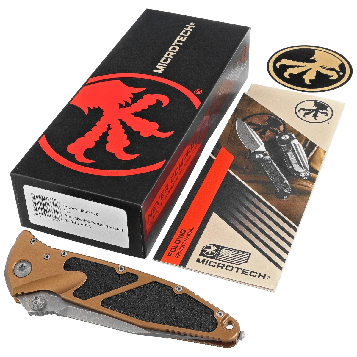 Microtech Socom Elite S/E-M Knife Tan Aluminum, Apocalyptic P/S M390 by Tony Marfione (160-11APTA)