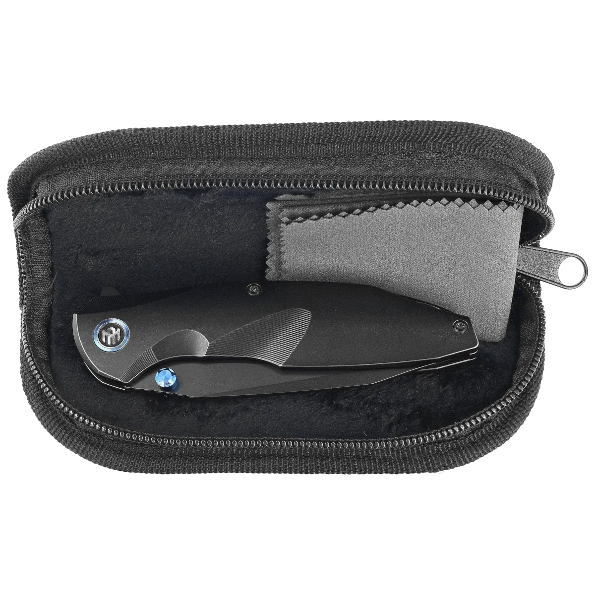 Handle - construction made entirely of titanium guarantees durability, rigidity and resistance to external conditions. The applied milling improves the ergonomics of the grip, while giving the surface a distinct technological texture. The frame lock, equipped with additional reinforcement, works securely and safely, providing the user with stability while working. The deep-carry clip allows low-profile carrying of the knife, making it as practical as it is elegant. The design combines the functionality of an everyday tool with the aesthetics of collector's objects, without sacrificing any aspect of utility.