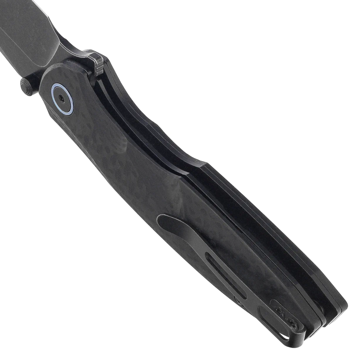 Handle - steel construction with G10 composite grips guarantees durability, rigidity and resistance to external conditions. The applied milling improves the ergonomics of the grip, while giving the surface a distinct technological texture. The liner lock works securely and safely, providing the user with stability while working. The deep-carry clip allows for low-profile carrying of the knife, making it as practical as it is elegant. The design combines the functionality of an everyday tool with the aesthetics of collector's objects, without sacrificing any aspect of utility.