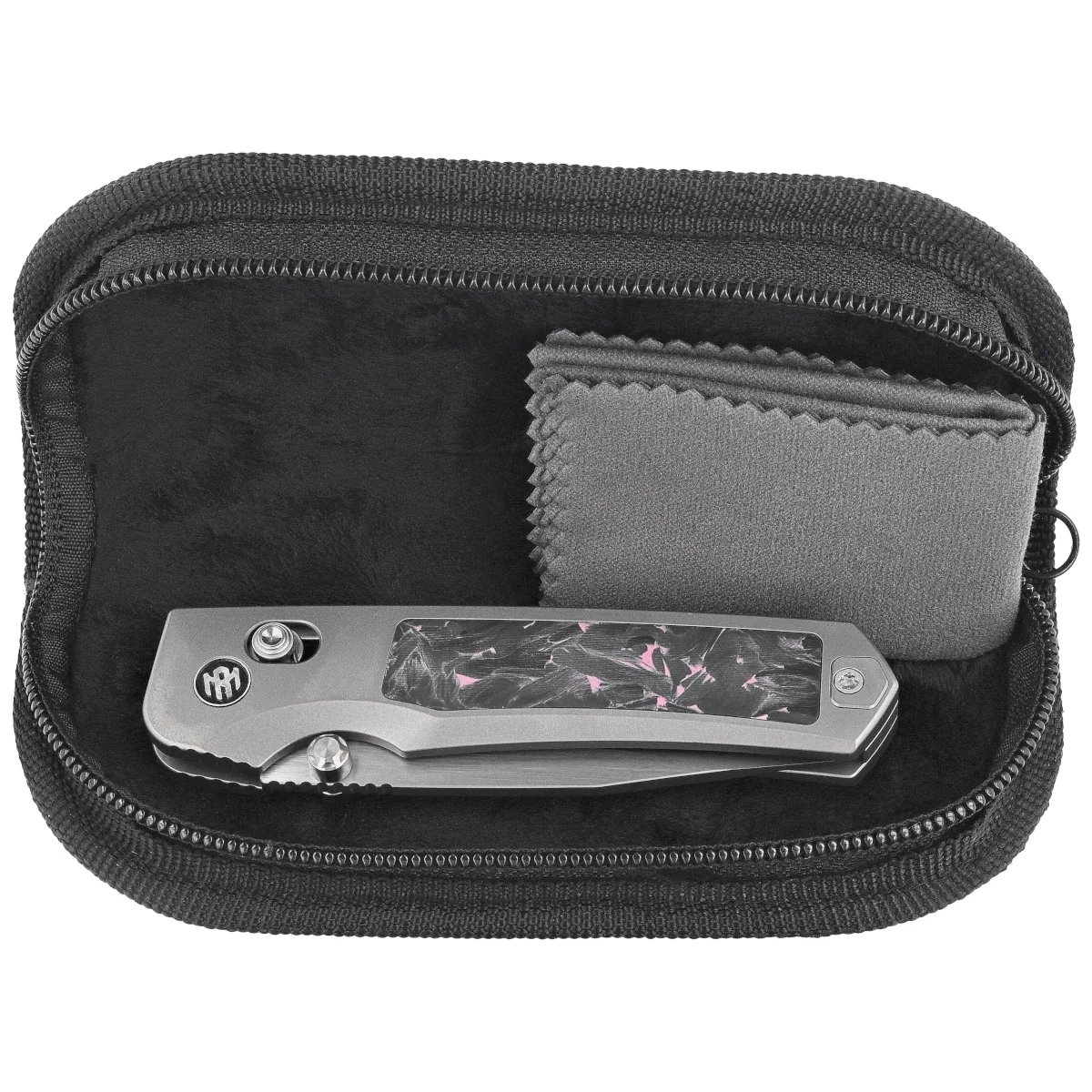 Handle - 6AL4V titanium skeleton, the surface of which has been treated with ceramic sandblasting, providing a matte finish resistant to traces of use. Carbon fiber inserts , embedded precisely in the recesses, increase grip and add visual contrast. The axis lock works with ceramic bearings, which translates into velvety smoothness of folding and unfolding the blade. The design is crowned by a double-sided deep carry clip made of titanium, allowing the folder to be carried discreetly. The ergonomic shape, symmetrical layout and high quality finish make the Aurora model an excellent everyday tool.