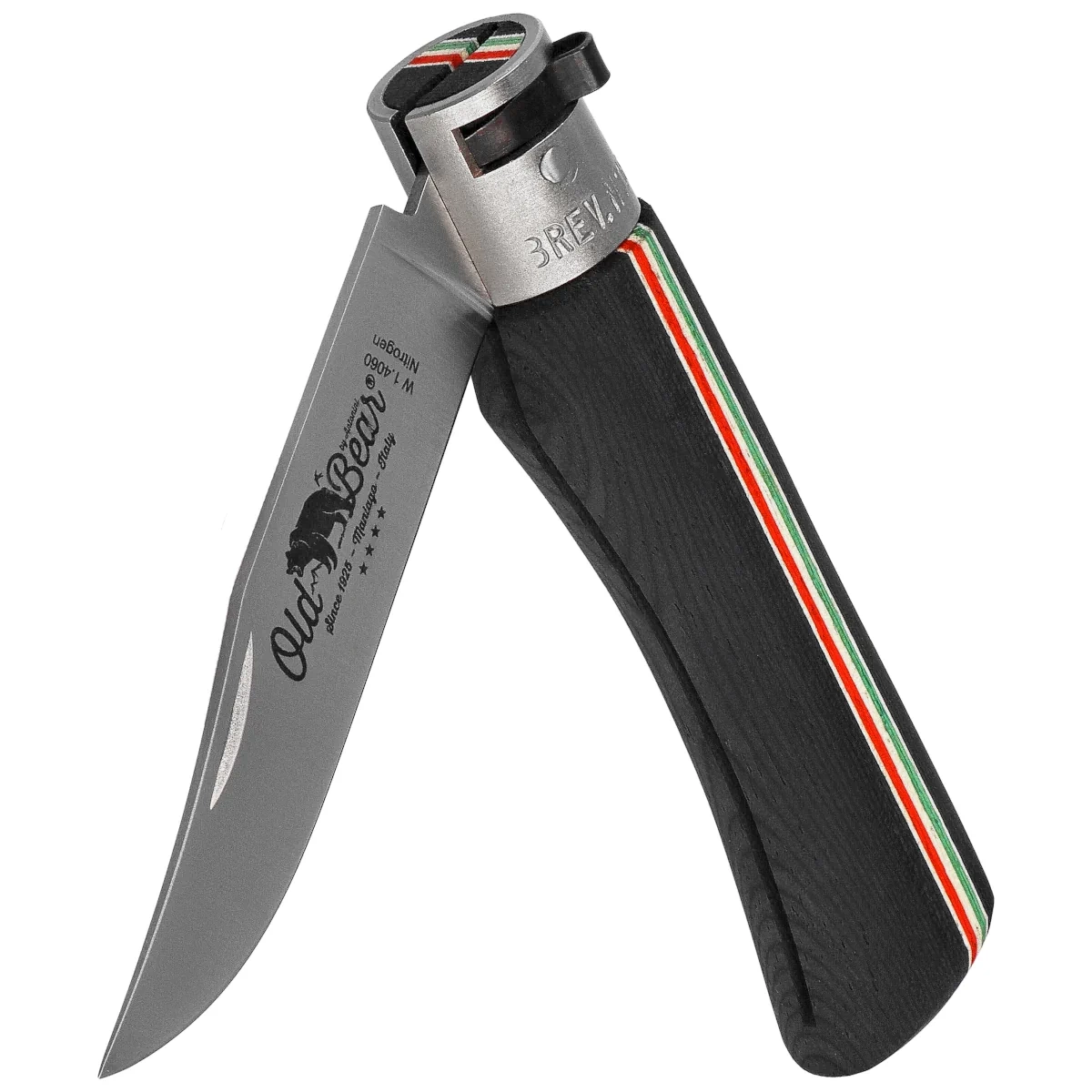 - Italy L Laminated Black Wood, Satin W.1.4060 Nitrogen - an elegant folding knife with a black laminated wood handle and a tri-color insert in the colors of the flag of Italy. Blade made of stainless steel W.1.4060 Nitrogen with satin finish.