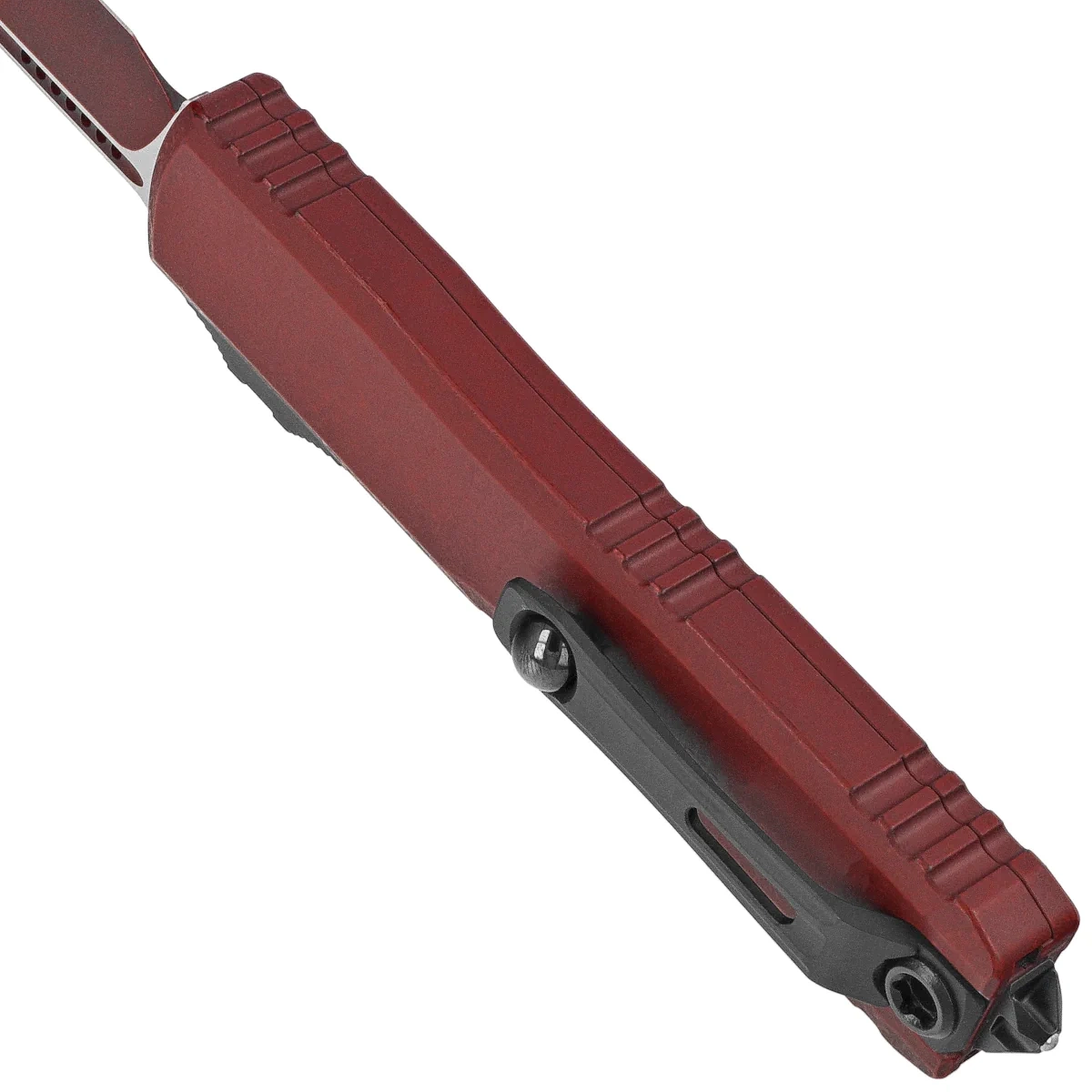 Ultratech S/E Gen III ZBP Cerakote Weathered Crimson Aluminum, Cerakote Weathered Crimson is a new addition to the Ultratech series - Microtech's first OTF knife without any blade play when unfolded! The blade play free automatic is distinguished by a number of improvements such as; Crud Kutter™, Dual-Fuel Drive Train™, Zero Blade Play™. The Handle was also redesigned, equipping it with solutions known from other models. Working in D/A (Double Action) mode, it allows the blade to be instantly extended and retracted with a single thumb movement. The design by Tony Marfione, owner of Microtech Knives, combines modern design with the highest quality workmanship