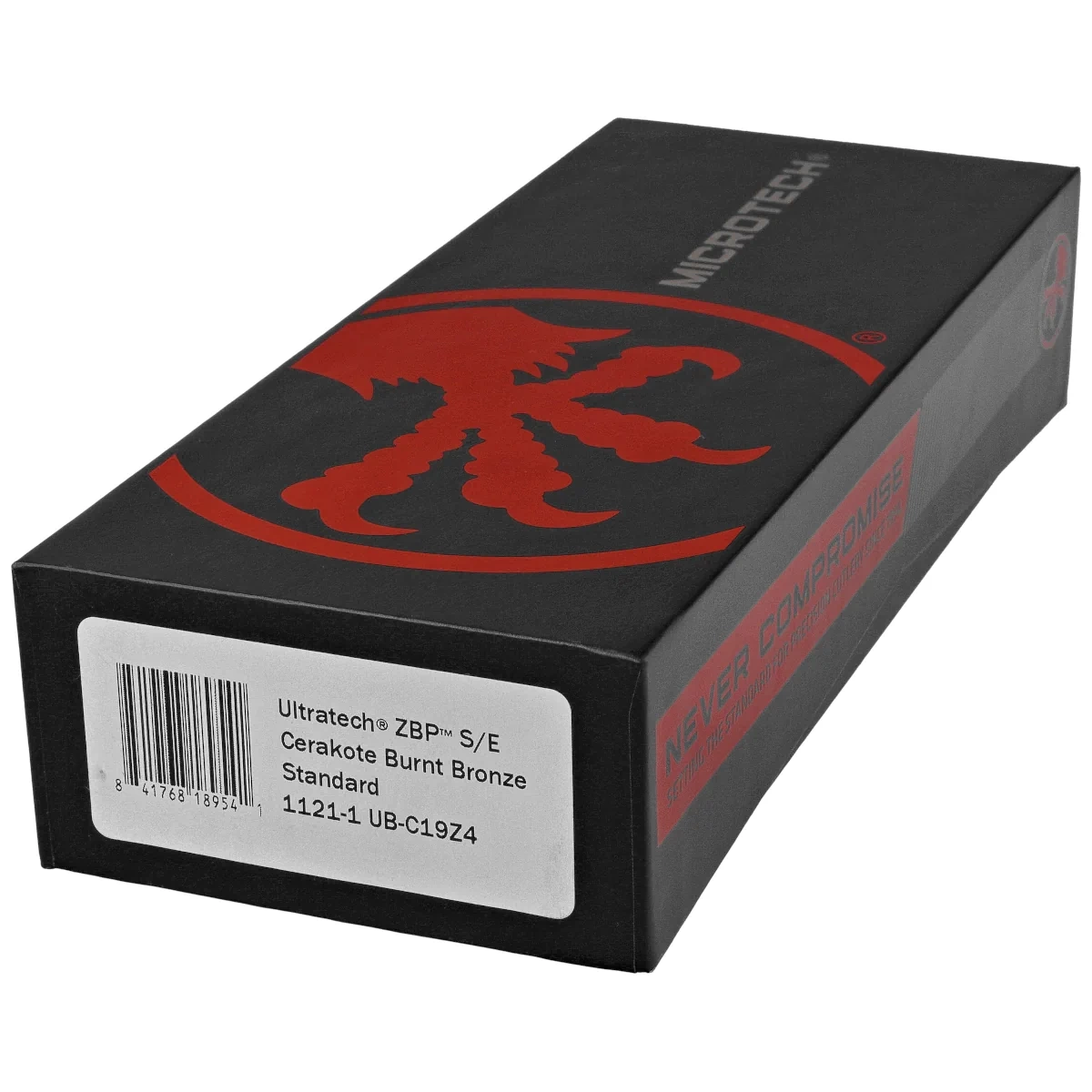 • Ultratech Gen 3 ZBP S/E Cerakote Burnt Bronze Aluminum, Cerakote Burnt Bronze is an upgraded version of Microtech's iconic knife: new glass striker, Crud Kutter system, Dual-Fuel Drive Train and Zero Blade Play™ - no blade play when unfolded.
