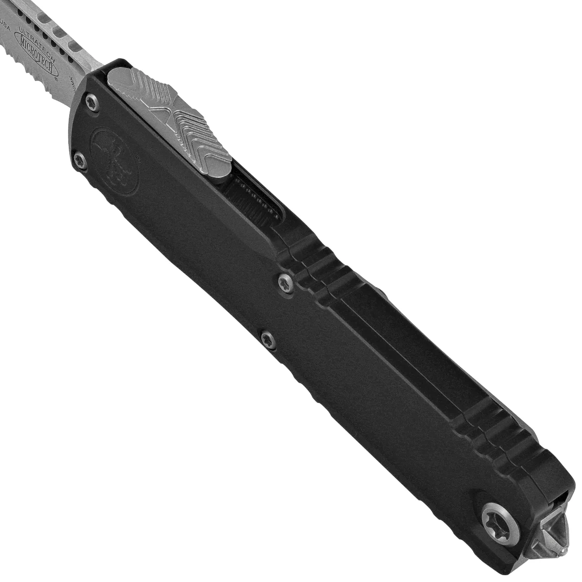 Ultratech S/E Gen III ZBP Black Aluminum, Stonewashed P/S is a new addition to the Ultratech series - Microtech's first OTF knife without any blade play when unfolded! The blade play free automatic is distinguished by a number of improvements such as; Crud Kutter™, Dual-Fuel Drive Train™, Zero Blade Play™. The Handle was also redesigned, equipping it with solutions known from other models. Working in D/A (Double Action) mode, it allows the blade to be instantly extended and retracted with a single thumb movement. The design by Tony Marfione, owner of Microtech Knives, combines modern design with the highest quality workmanship