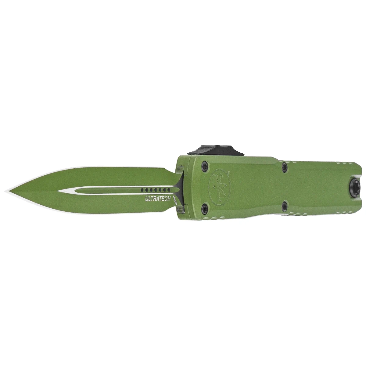 Ultratech D/E Gen III ZBP Green Cerakote Aluminum, Green Cerakote is a new addition to the Ultratech series - Microtech's first OTF knife without any blade play when unfolded! The blade play free automatic is distinguished by a number of improvements such as; Crud Kutter™, Dual-Fuel Drive Train™, Zero Blade Play™. The Handle was also redesigned, equipping it with solutions known from other models. Working in D/A (Double Action) mode, it allows the blade to be instantly extended and retracted with a single thumb movement. The design by Tony Marfione, owner of Microtech Knives, combines modern design with the highest quality workmanship