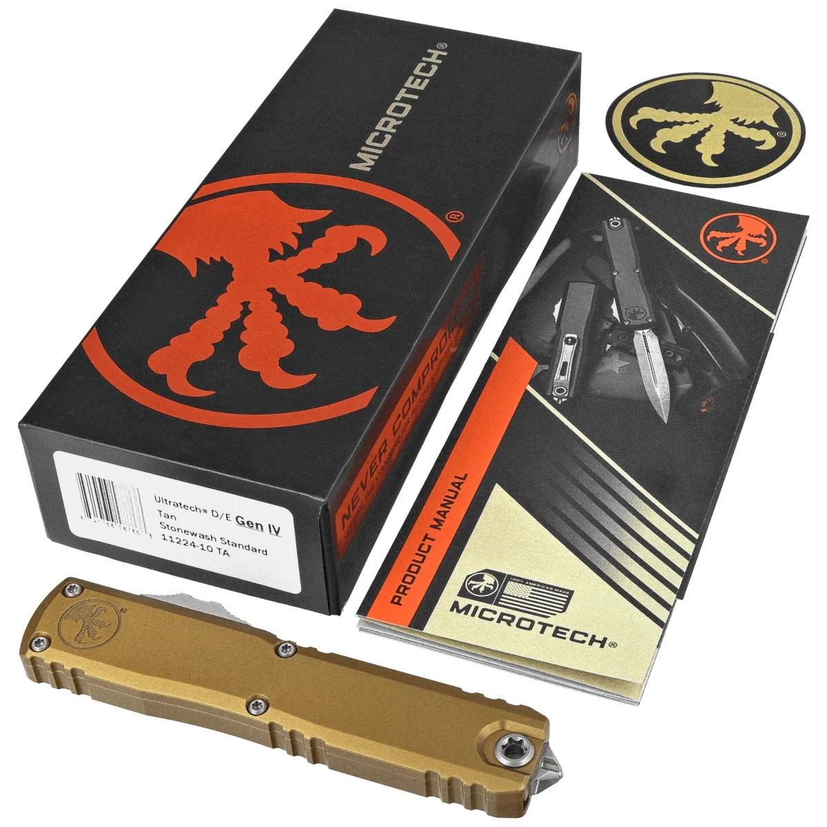 - Ultratech Gen IV D/E Tan Aluminum, Stonewashed is a full-size OTF automatic knife from Ultratech. Operating in D/A mode, Blade made of Böhler M390MK steel, precision machined aluminum Handle. Designed by Tony Marfione owner of Microtech